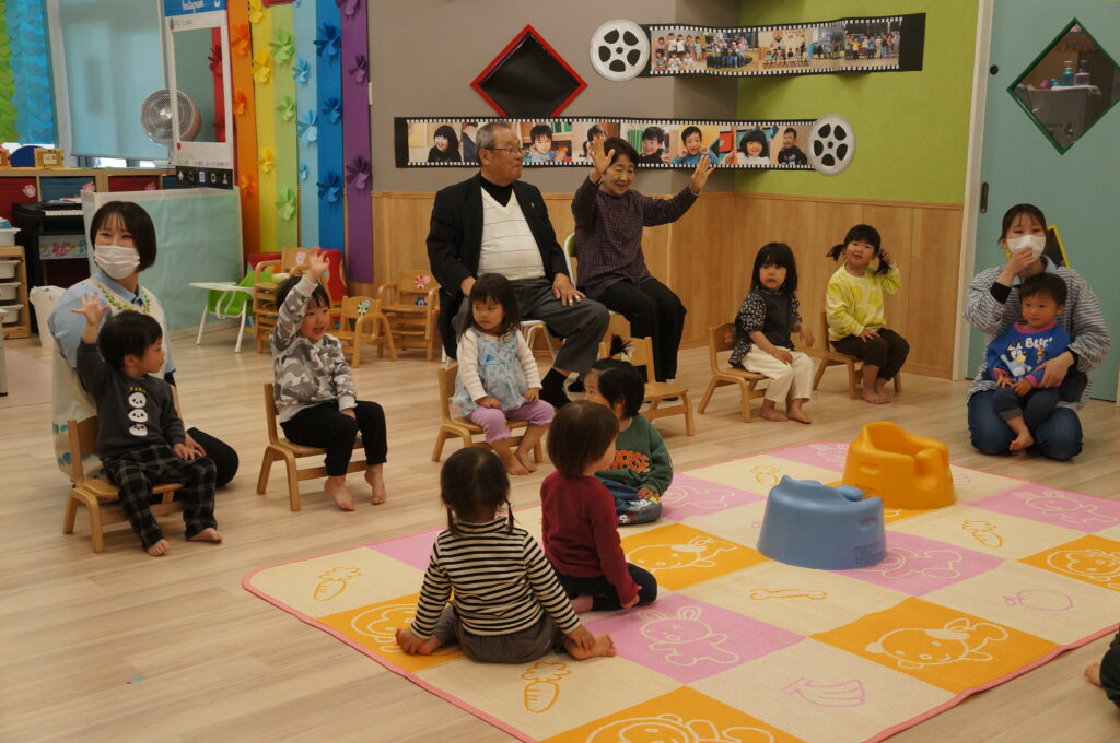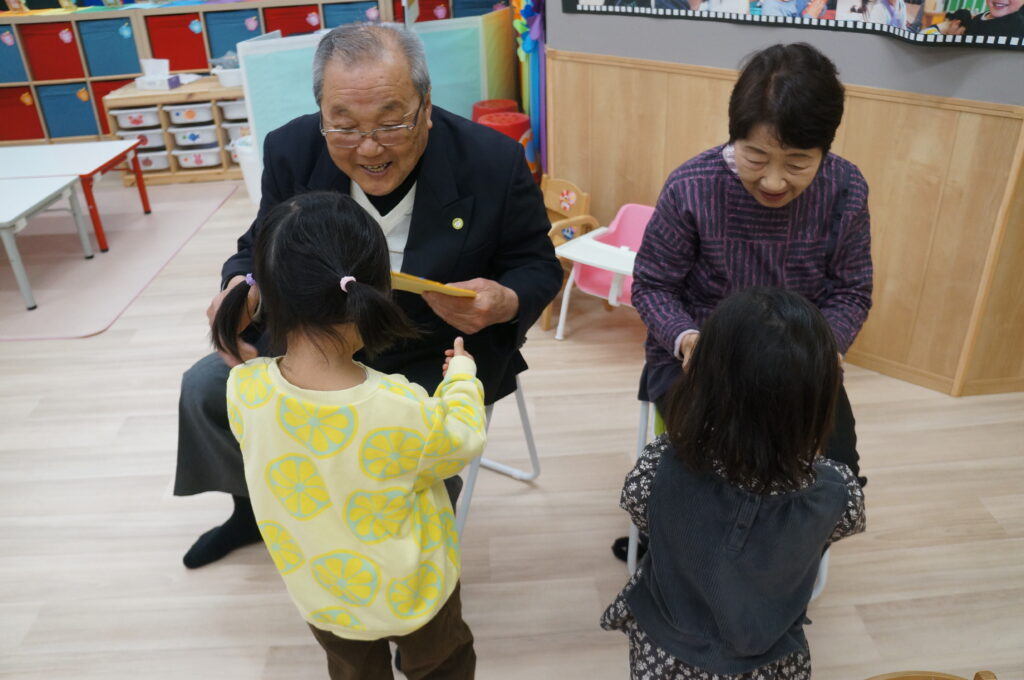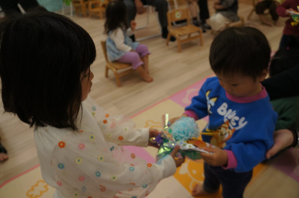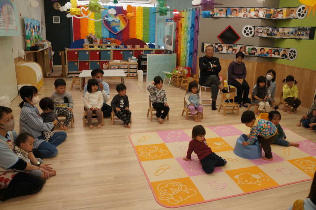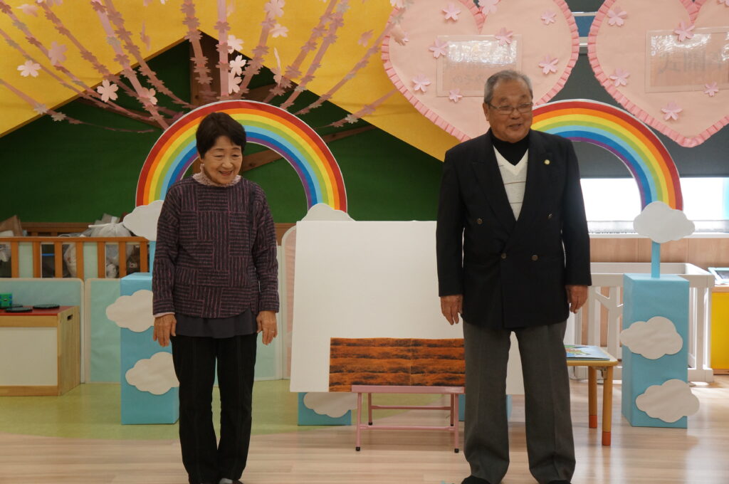 地域の方も来てくれて、卒園する子どもたちへのお祝いや進級する子どもたちへ、あたたかい声をかけてくれました。