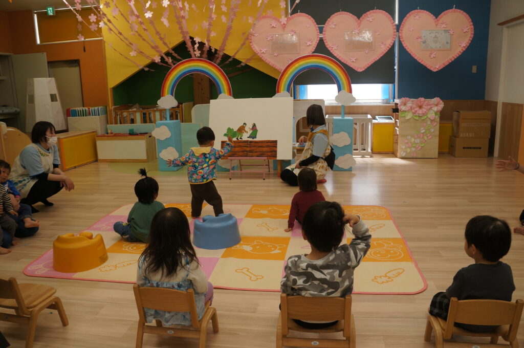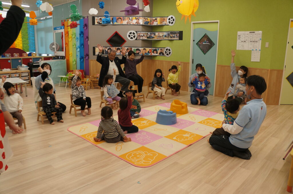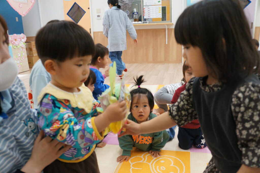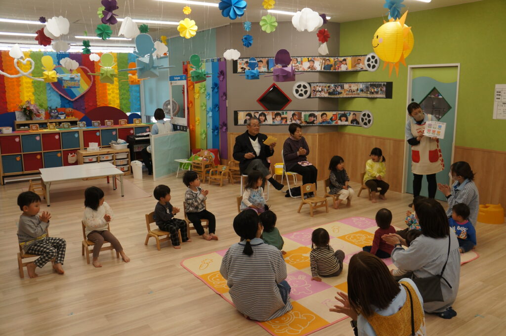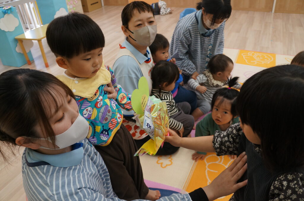 地域の方も来てくれて、卒園する子どもたちへのお祝いや進級する子どもたちへ、あたたかい声をかけてくれました。