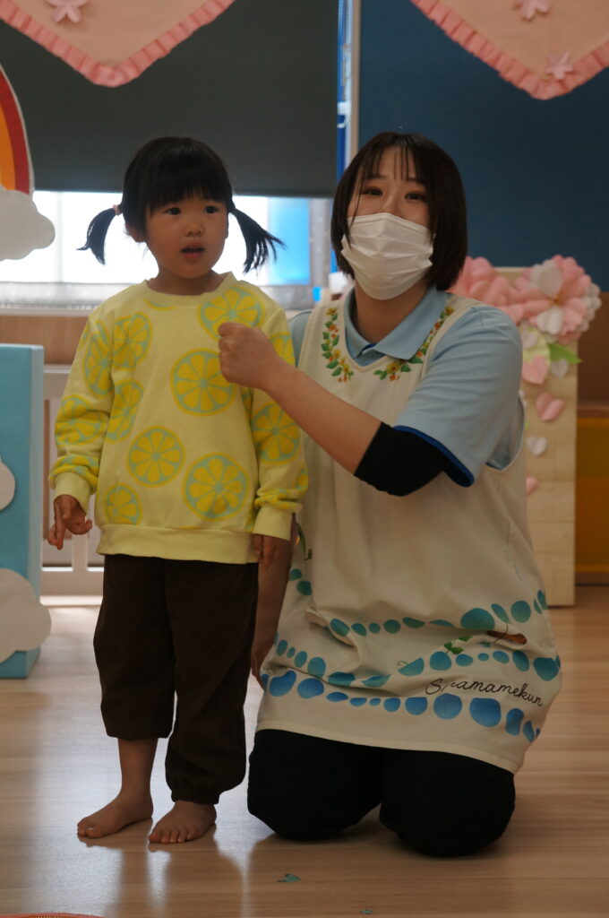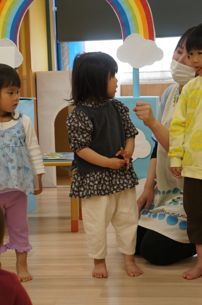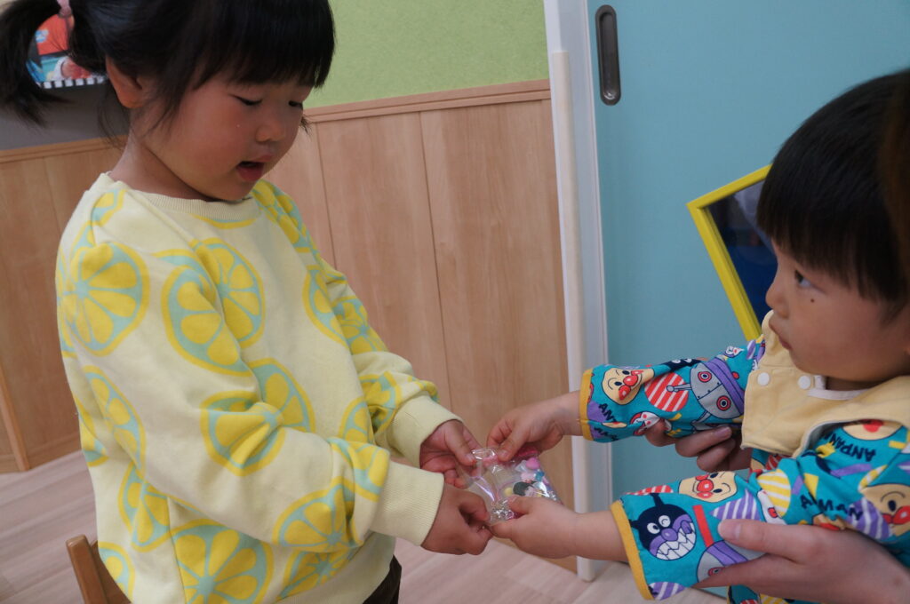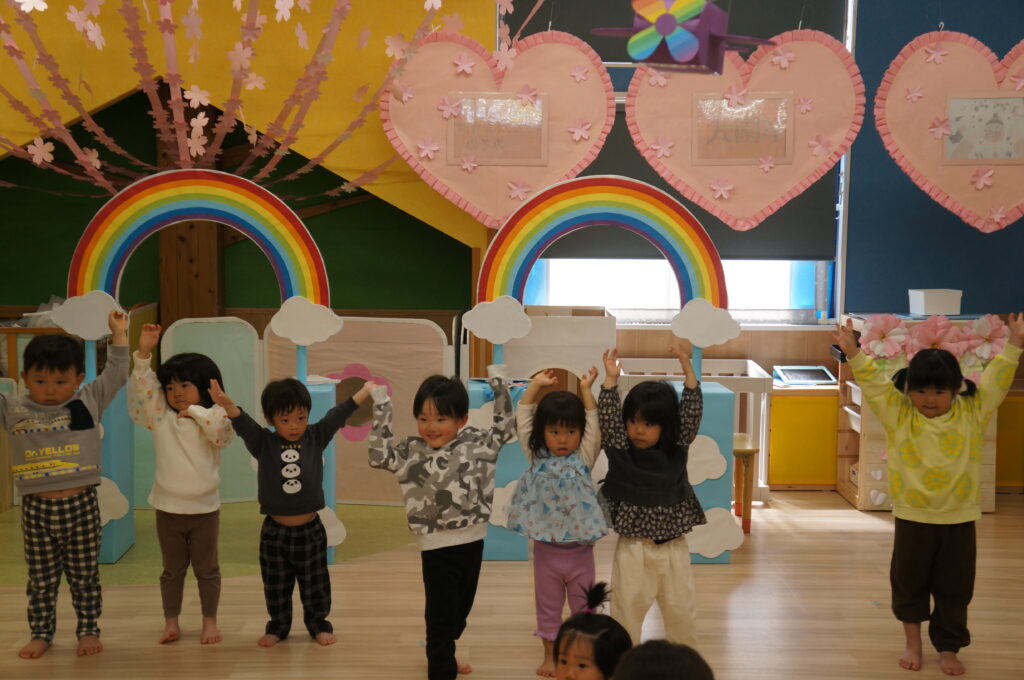 にこにこで「おはよう!」と登園してくるそら組の子どもたちを待っています。