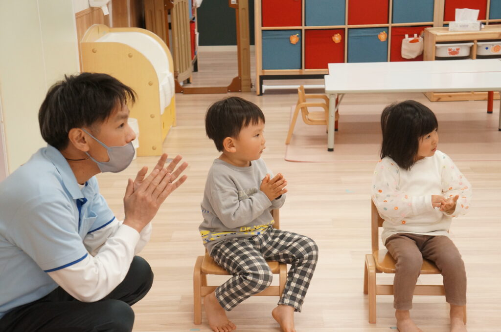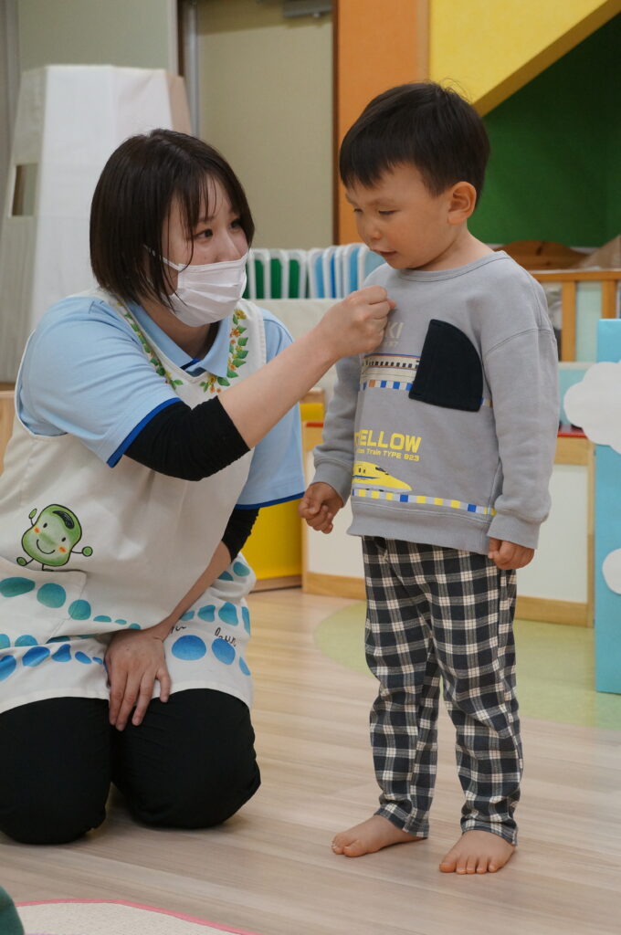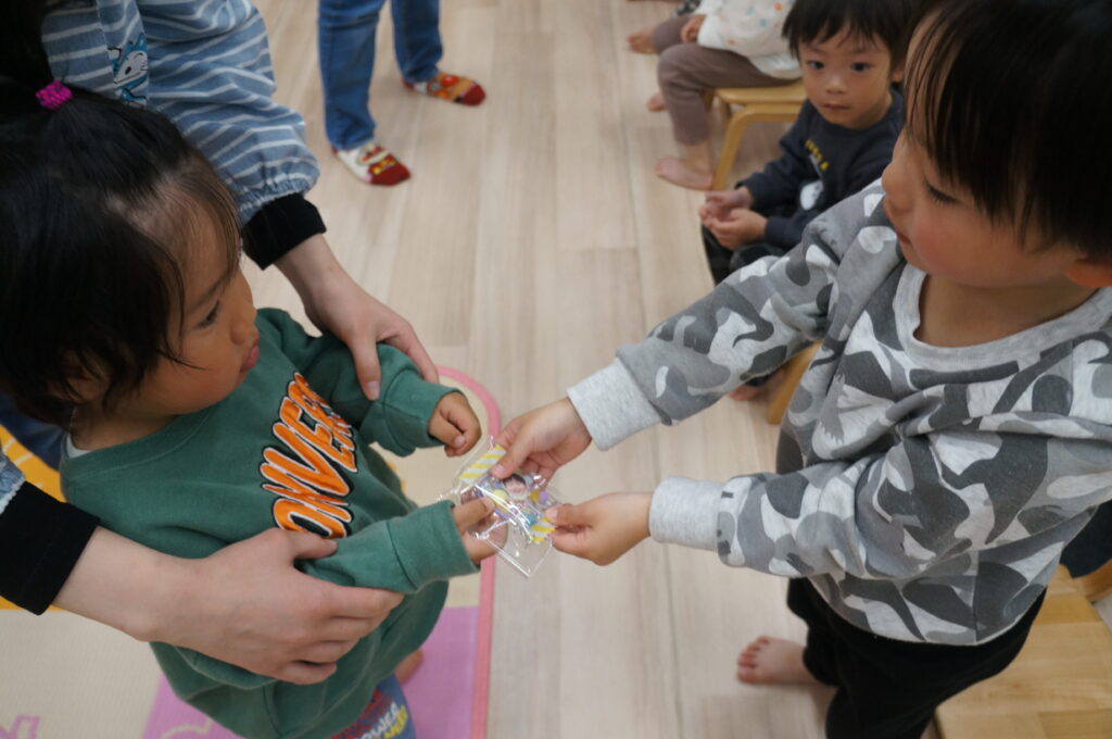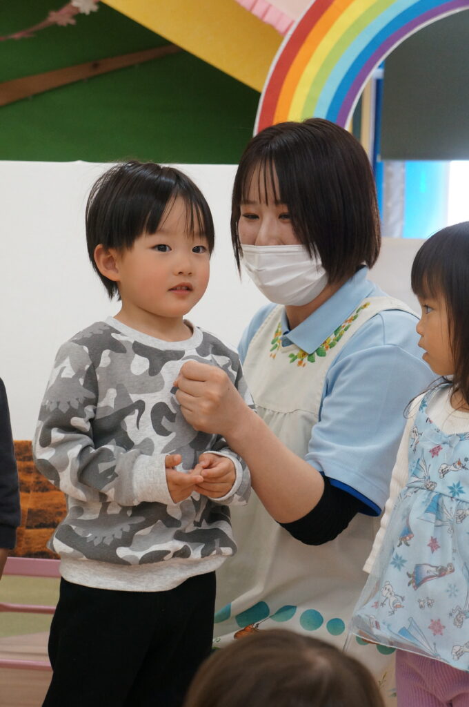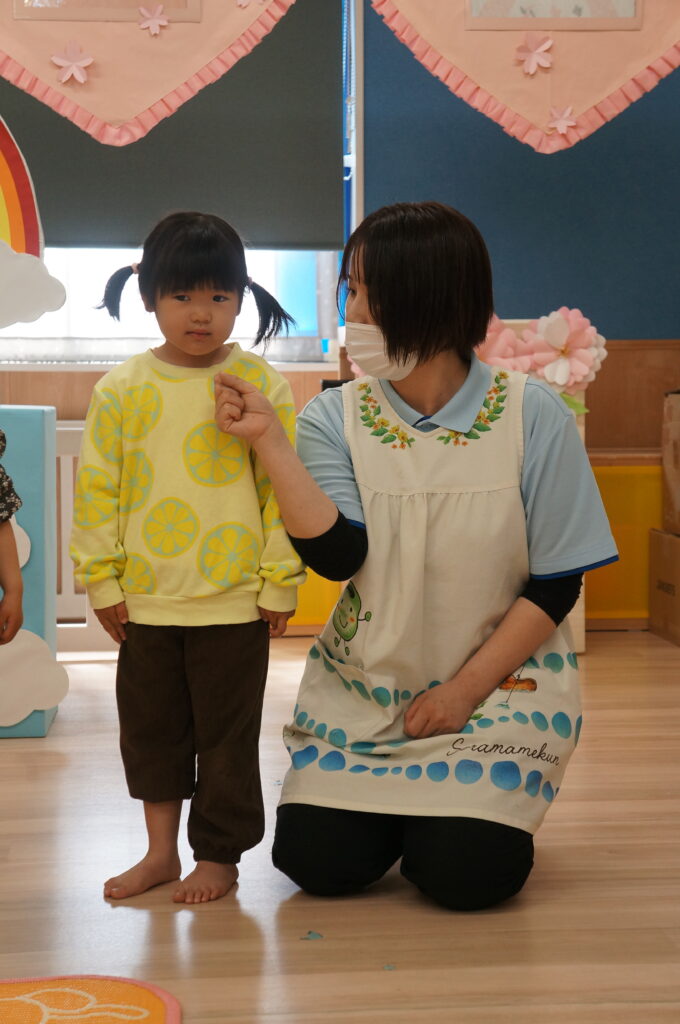 にこにこで「おはよう!」と登園してくるそら組の子どもたちを待っています。