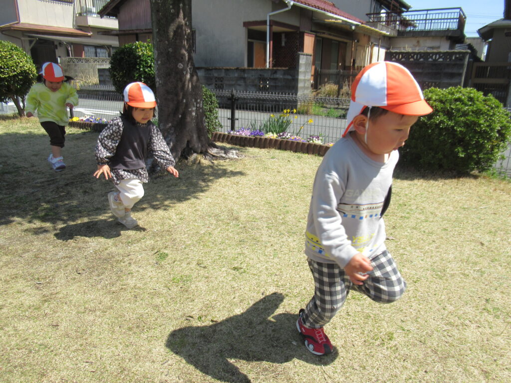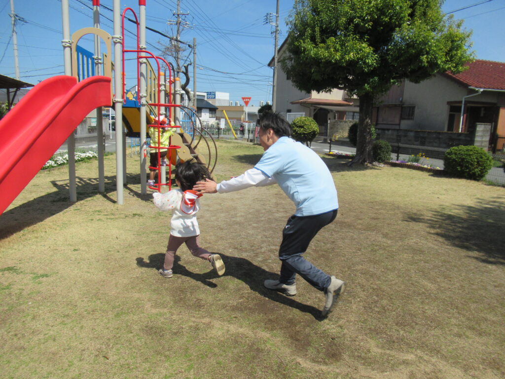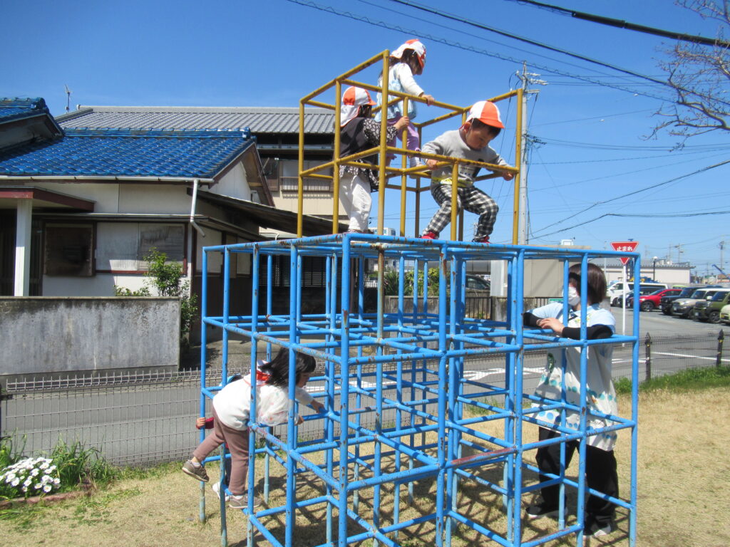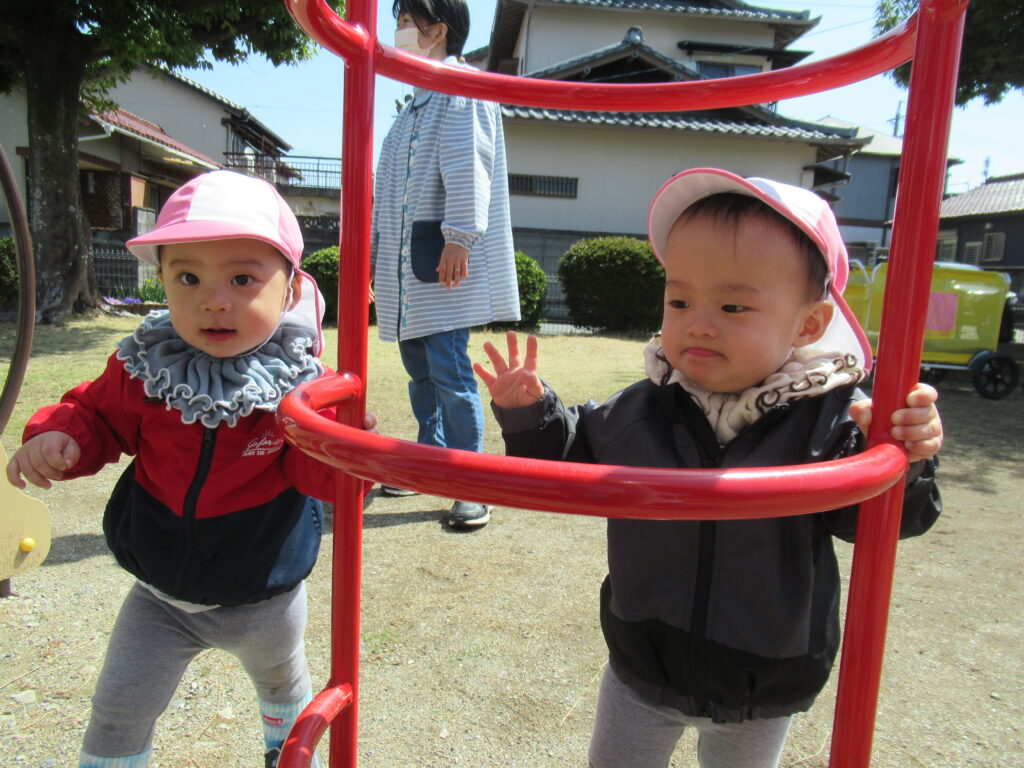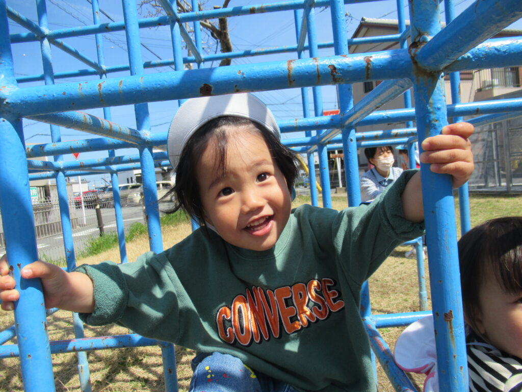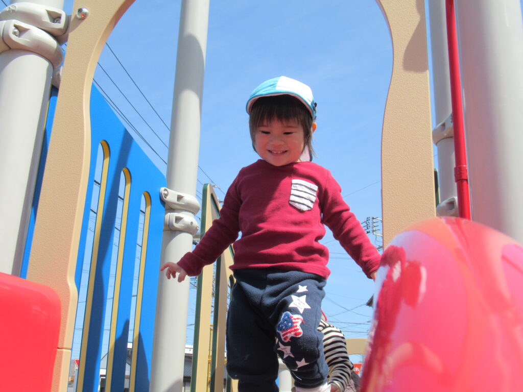 言葉を覚え始めた子どもたちが「どうぞ」や「ありがとう」と言い合いながら、おもちゃを貸し借りする姿や、鉄棒やジャングルジムなどの遊具にも挑戦する姿…。