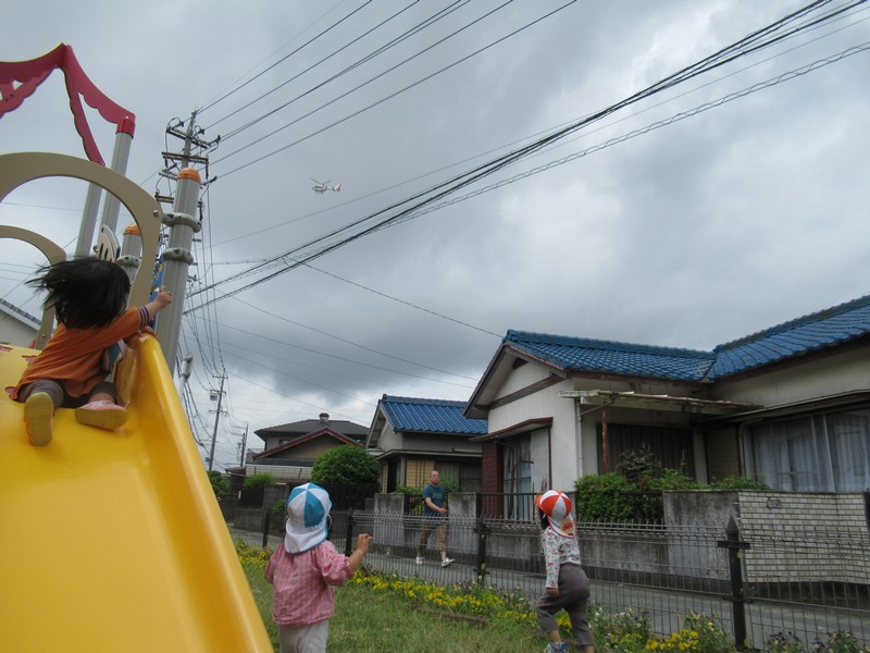 公園で遊んでいると、バタバタバタバターーーッッッ!!…っと音がして、空を見上げるとヘリコプターを見ることが出来ます。