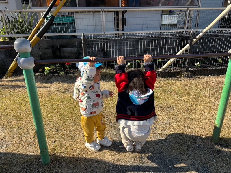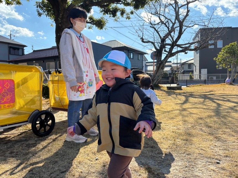 やわらかな日差しが、おさんぽに行きたい子どもたちを歓迎してくれているよう…。