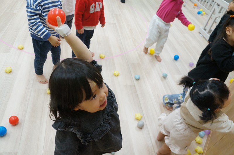 「あたれー!!」と、的にむけて力強くボールをなげてあそんだり…