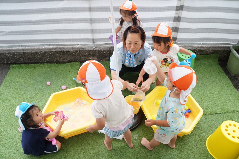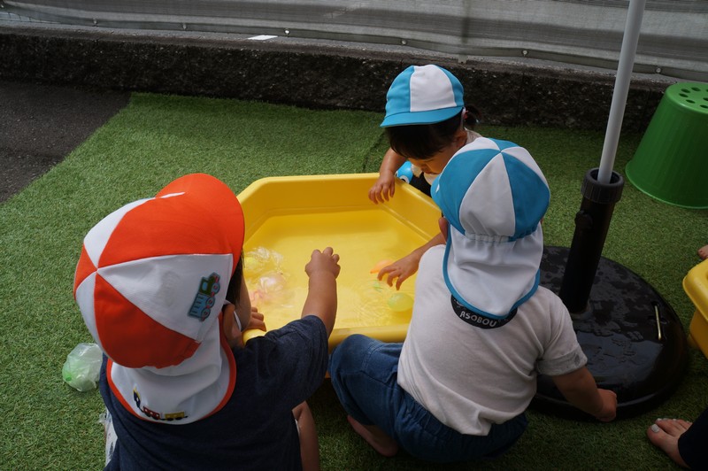 活動時間は短めに、氷も用意してあそびを楽しみました。