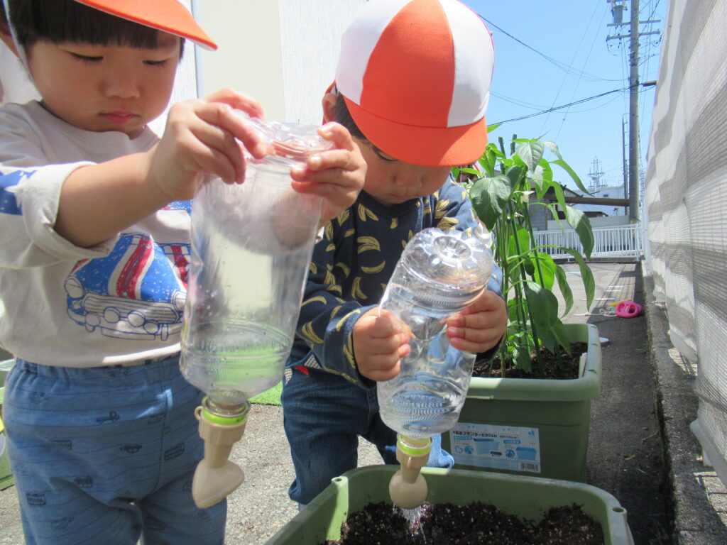 「おなか、すいてる?」とか、「はい、どうぞ」とか、子どもたちも野菜に声をかけながら、交替でお水をあげました。