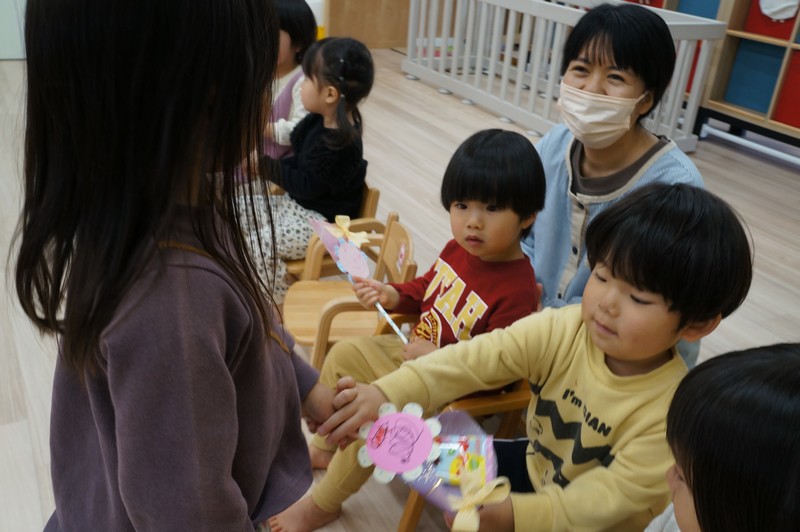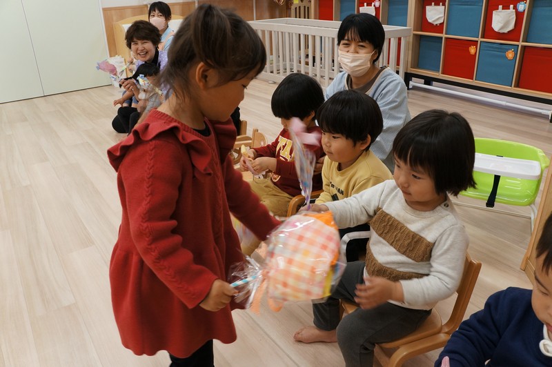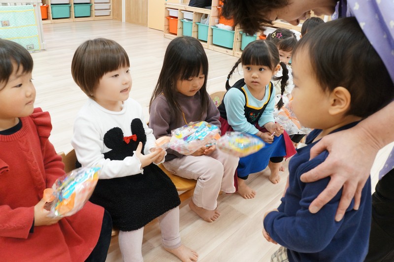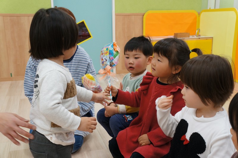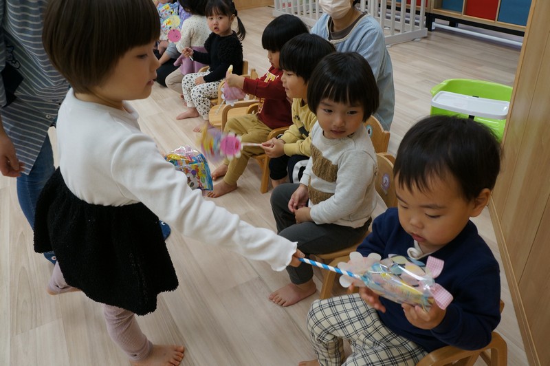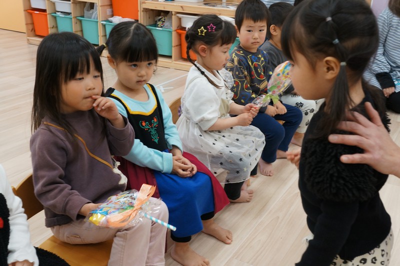 子どもたちで、お菓子のブーケの交換をしました。