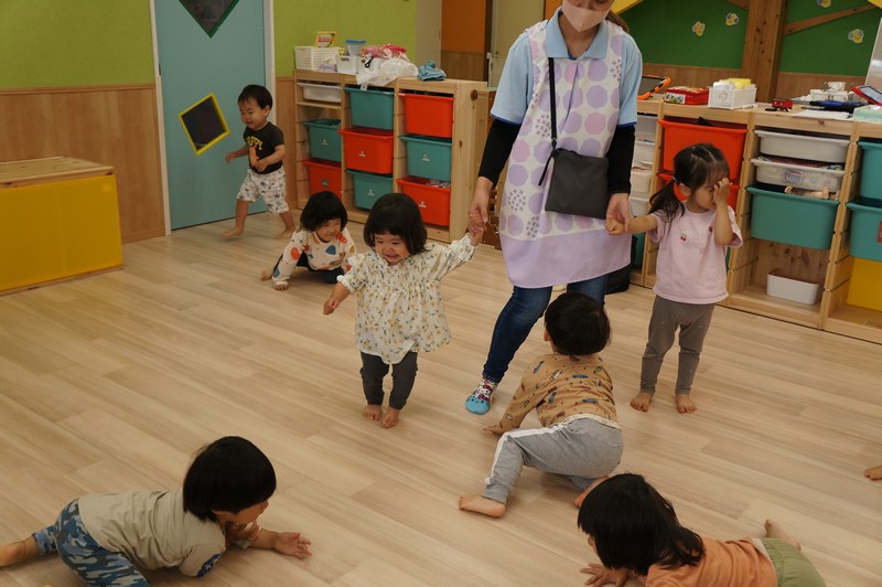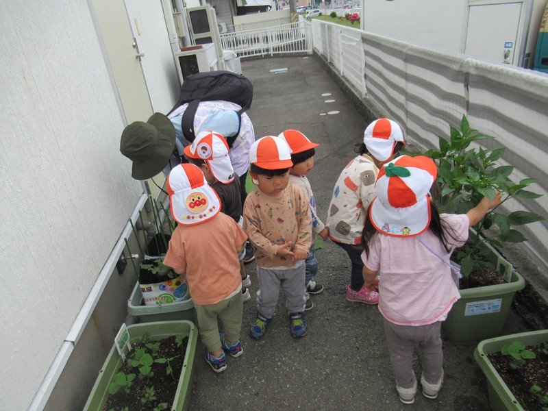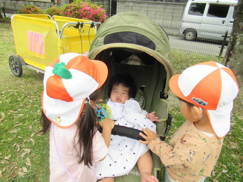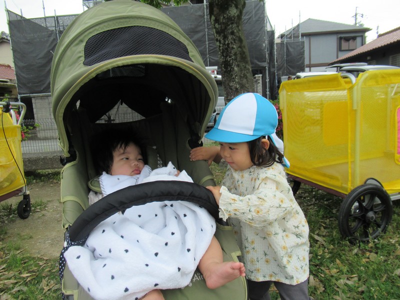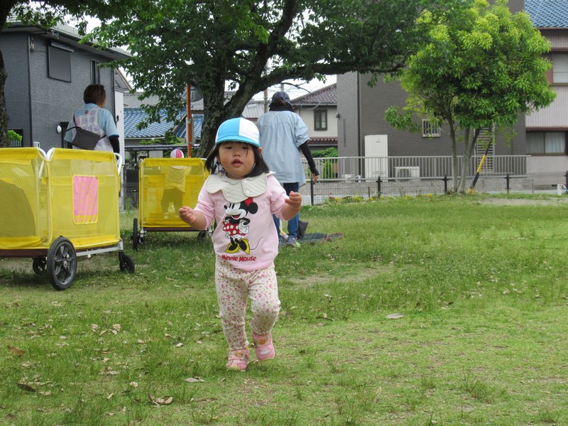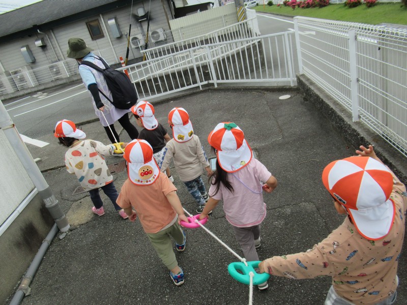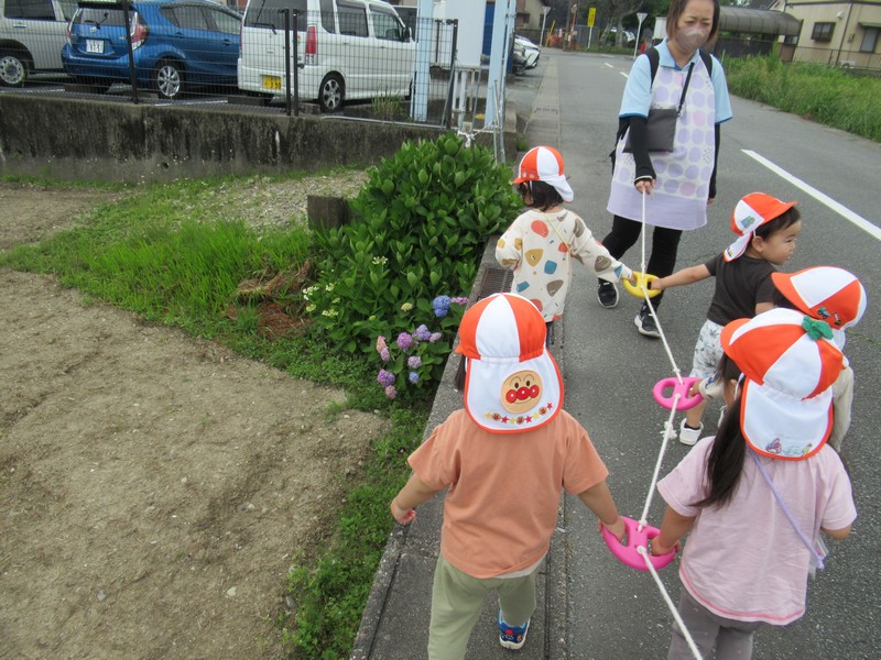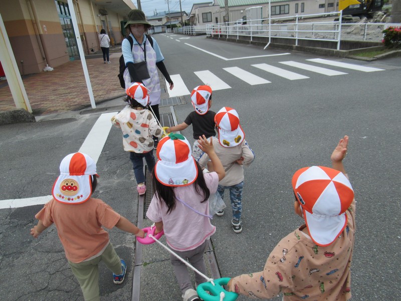 車や歩行者が多いおさんぽコースですが、子どもたちはしっかりと前を見て、車や自転車、歩いている人を確認しながら歩いています。