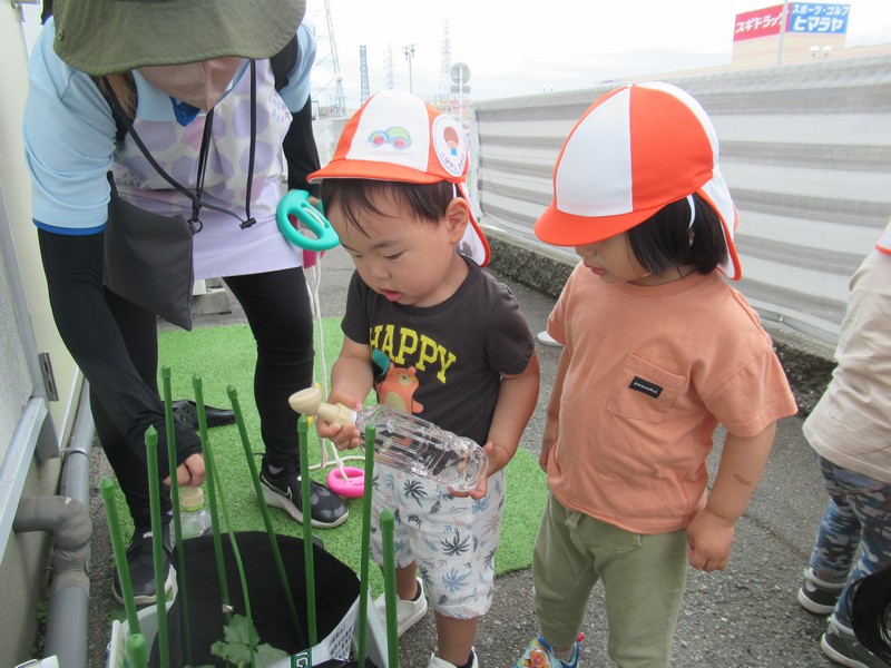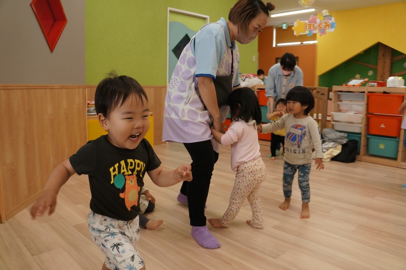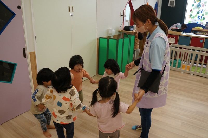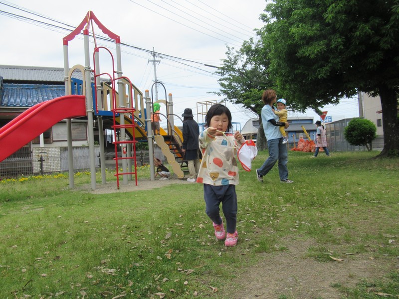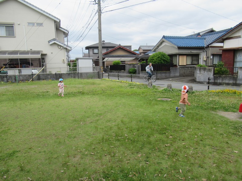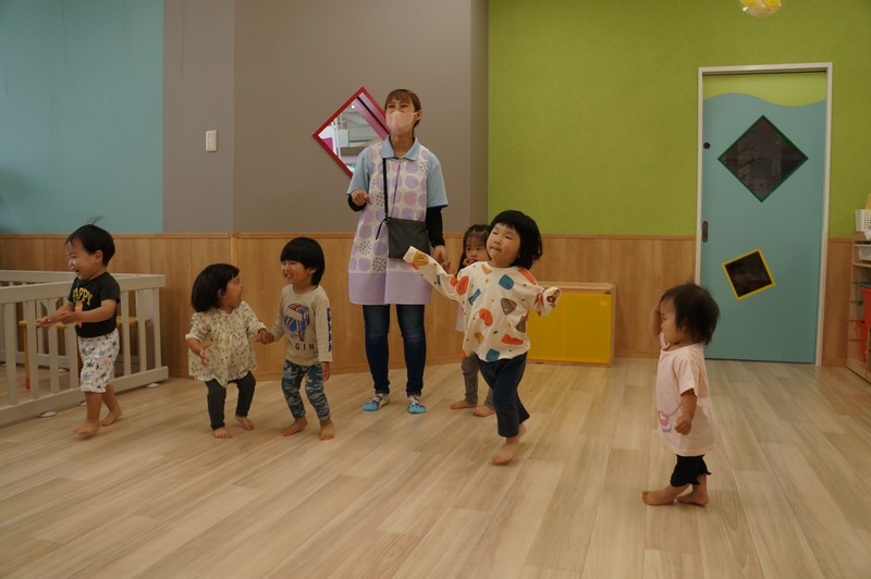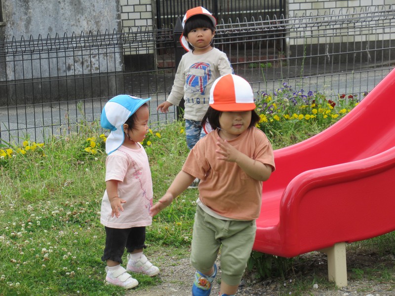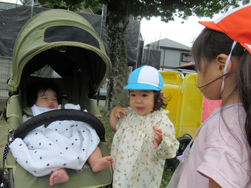 車や歩行者が多いおさんぽコースですが、子どもたちはしっかりと前を見て、車や自転車、歩いている人を確認しながら歩いています。