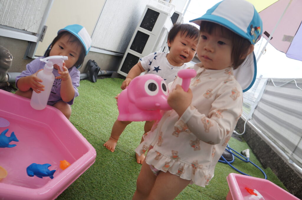 例年よりも早く水あそびを始めましたが、
