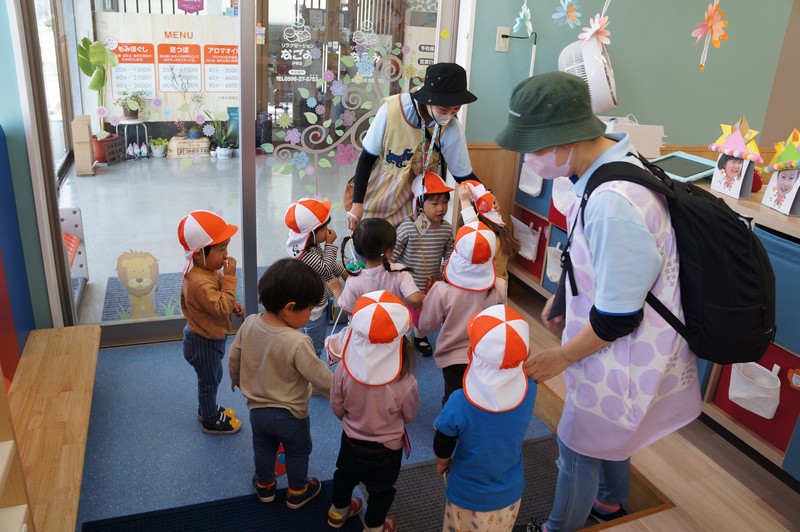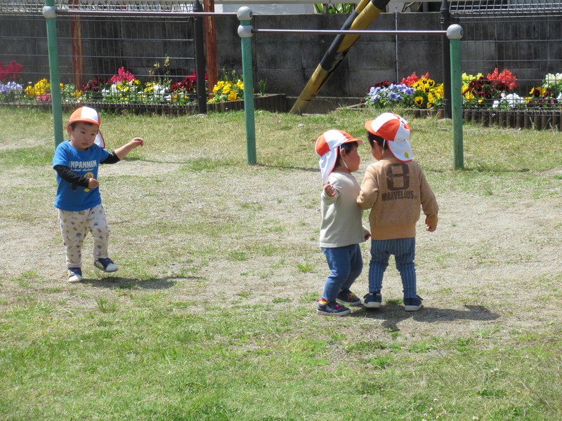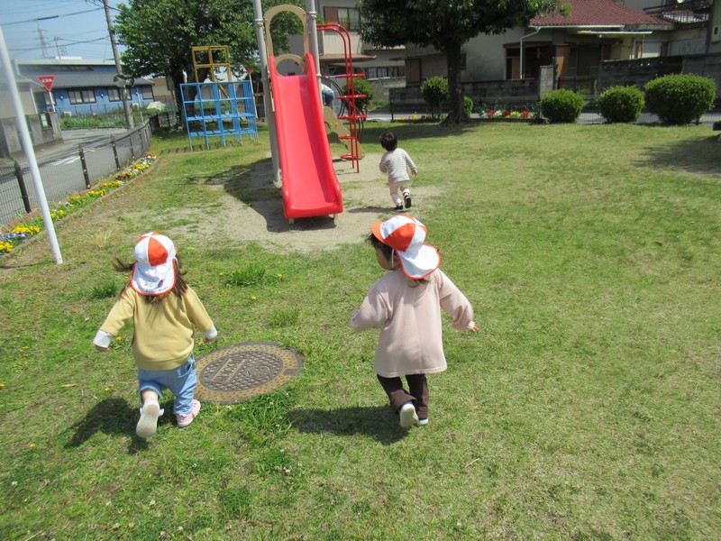 1歳児クラスも、公園へおさんぽ。