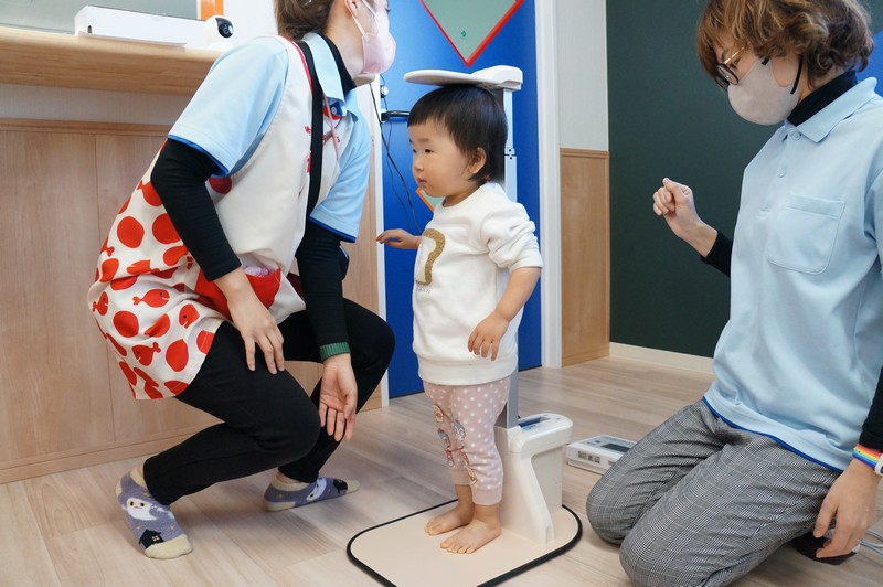 まっすぐ背中をのばして、身長計に立つ子…