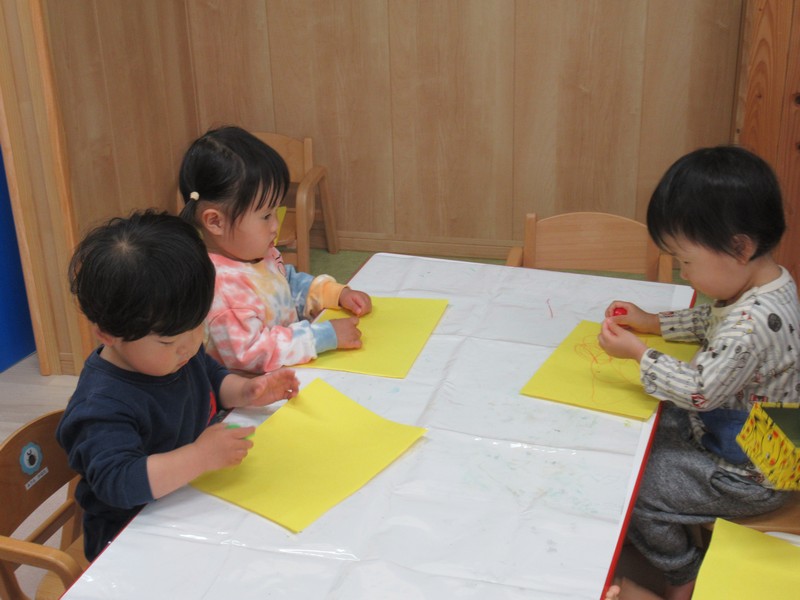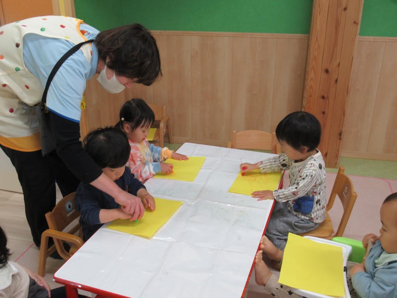 0、1歳児クラスは、お絵描き。