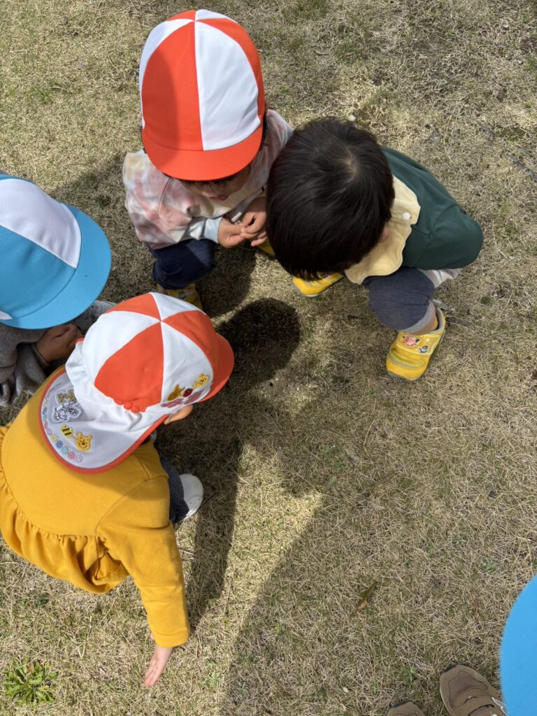 公園で、なにやら見つけた子どもたち…。