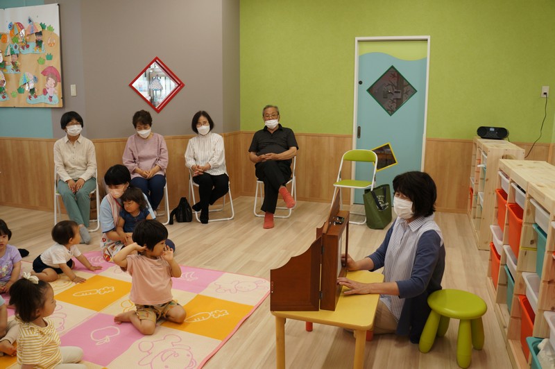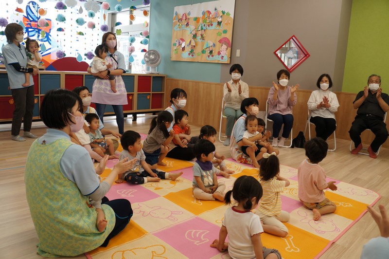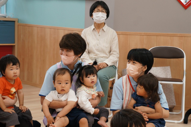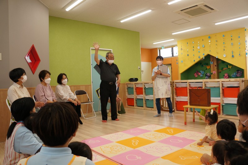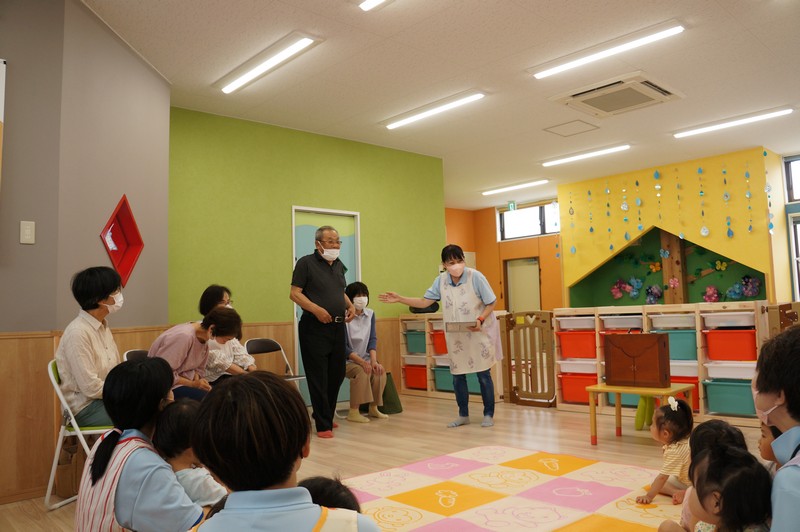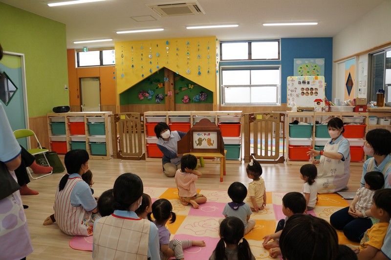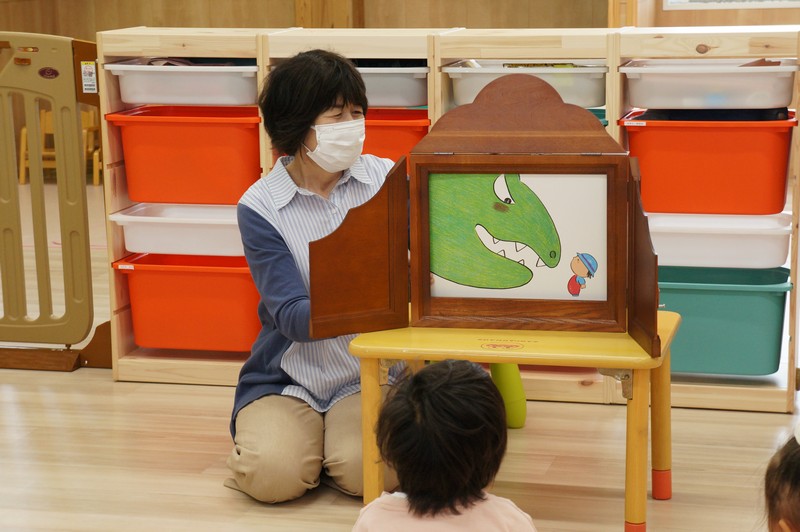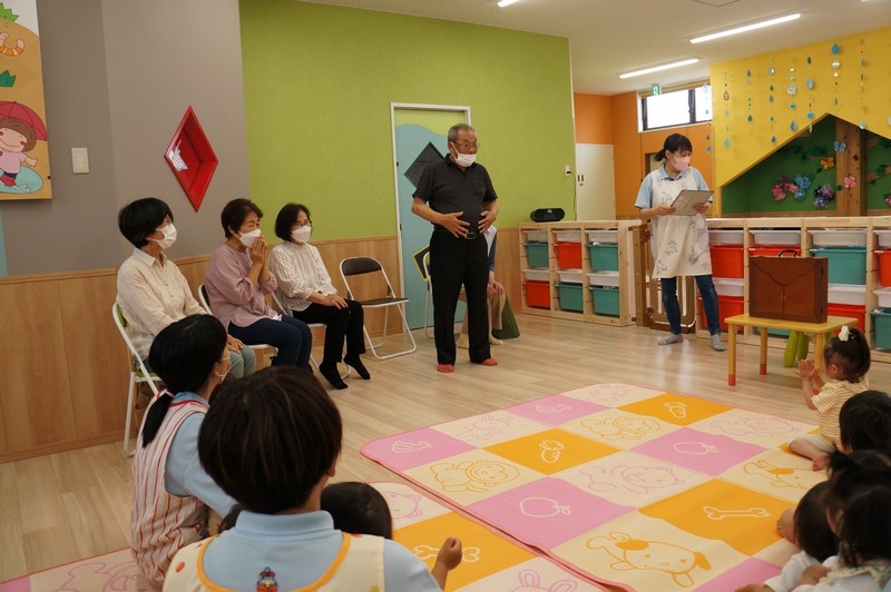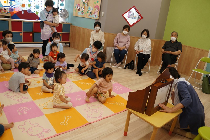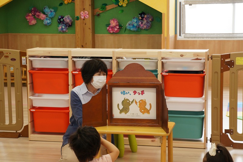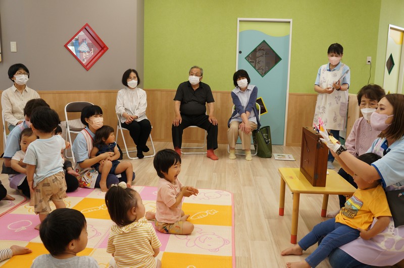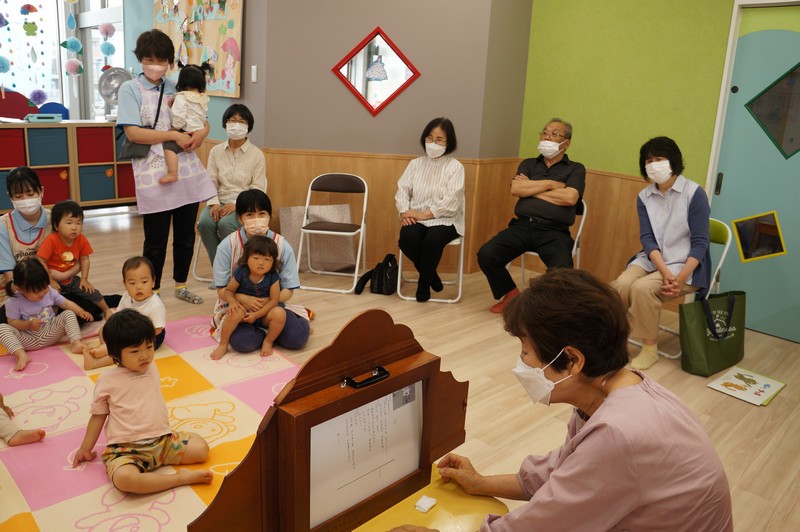 紙芝居を読んでもらい、一緒に歌ったり、ふれ合いを楽しみました。