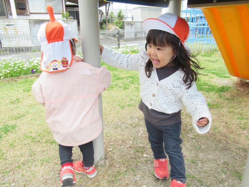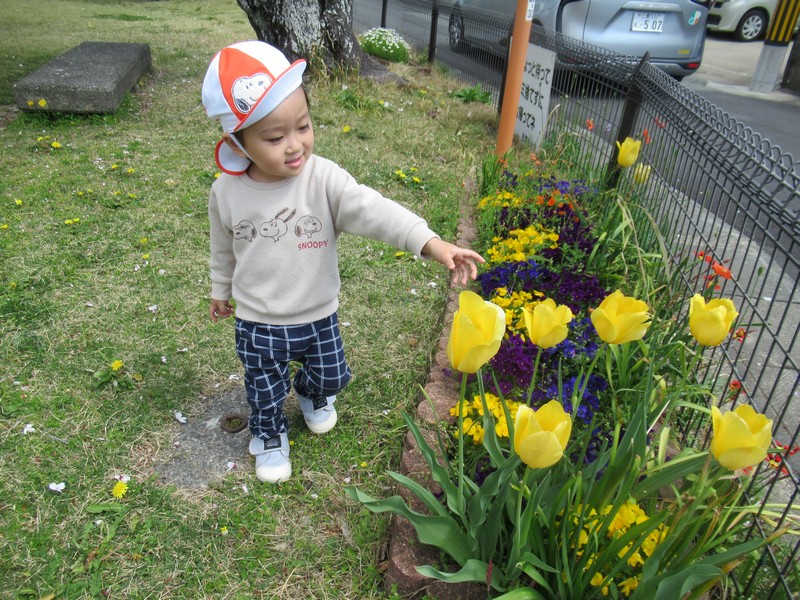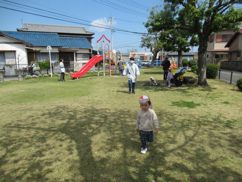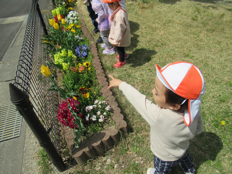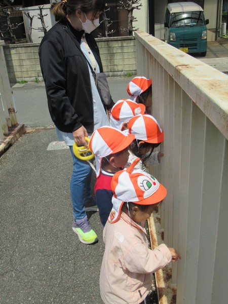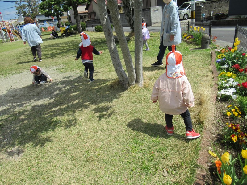 2歳児クラスは、公園から少し足をのばしておさんぽ。
