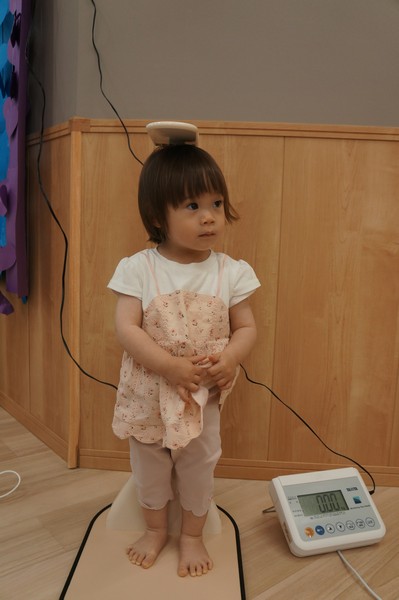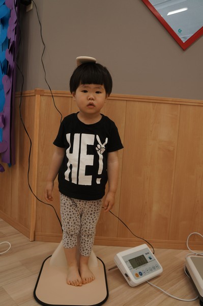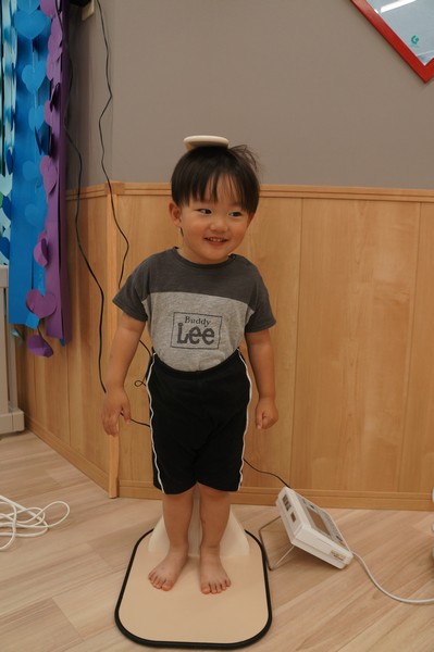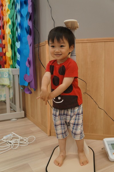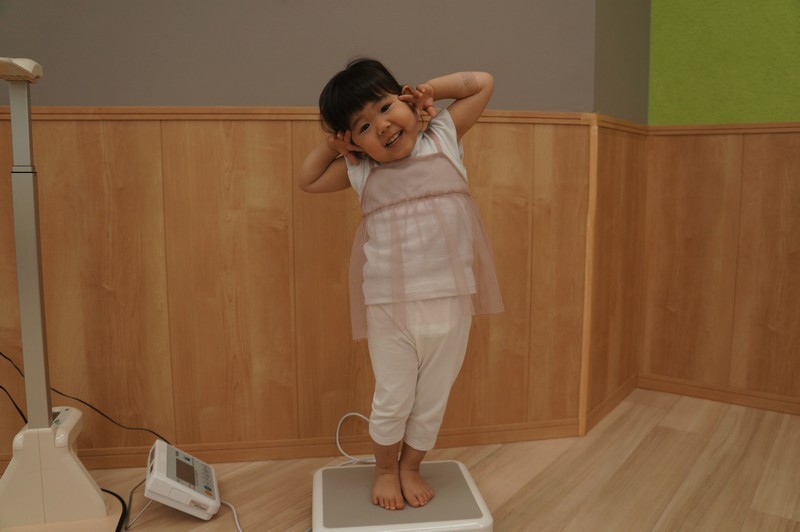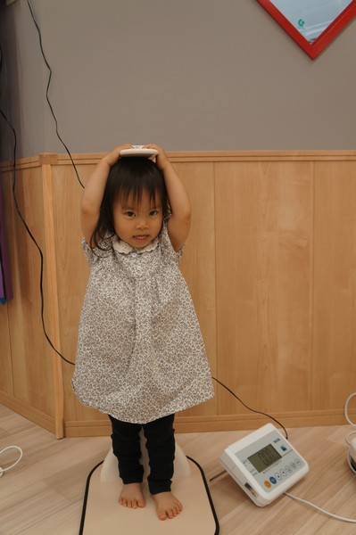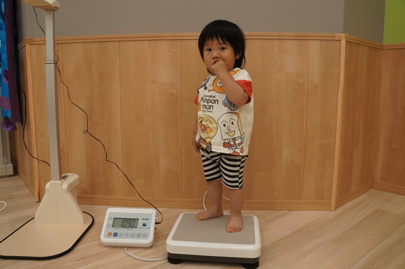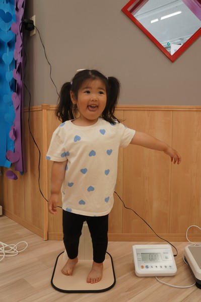 身長計と体重計を前に、子どもたちも慣れた様子。