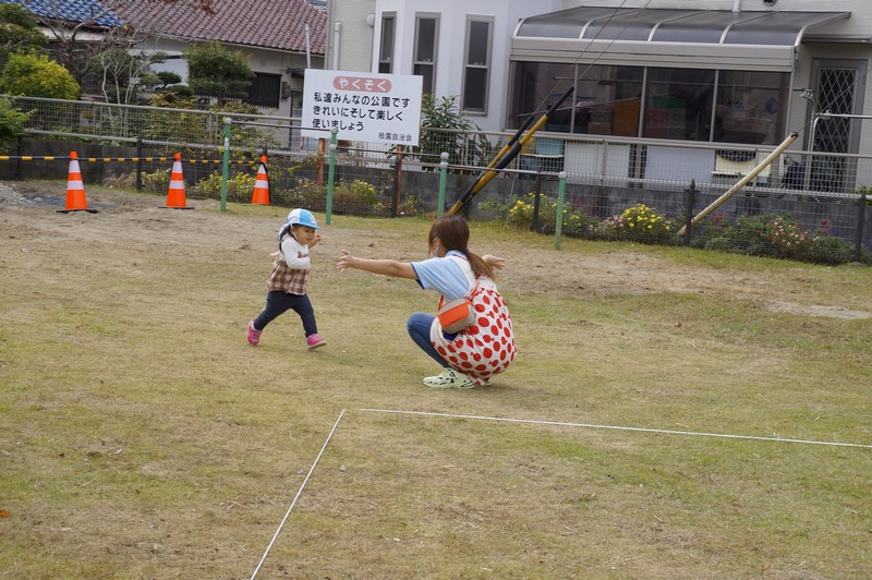 落ち葉のシャワーを浴びながら、いつもより広い公園内を走りまわって楽しい時間となりました。