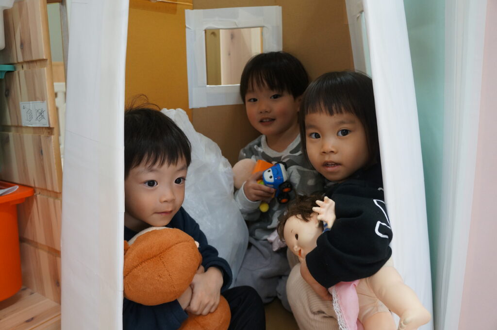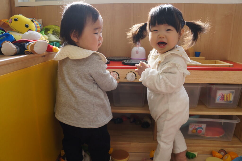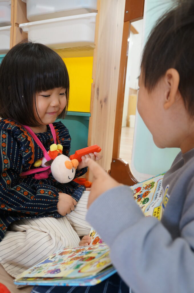 おもちゃをいっしょにつかったり、えほんをいっしょにみたり…