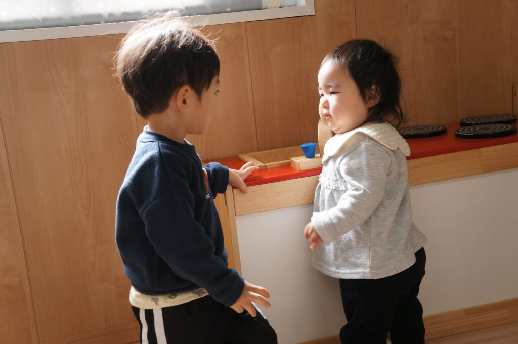 保育園生活の中のさまざまな経験を通して、お友だちへの関心を広げています。