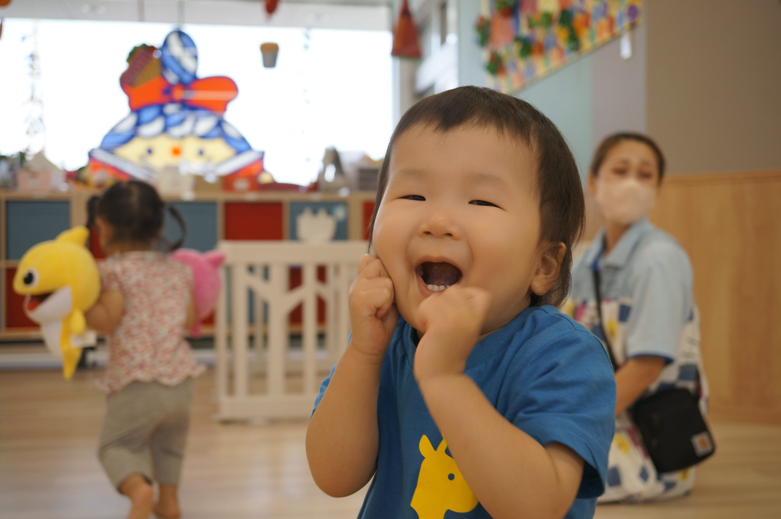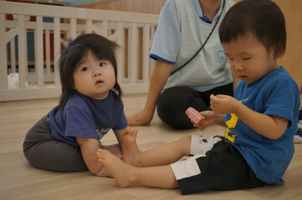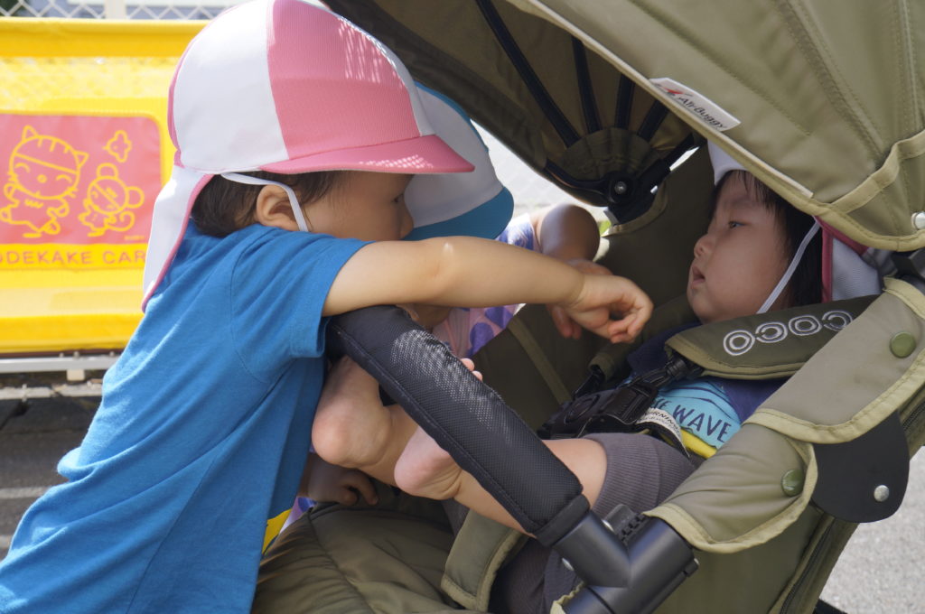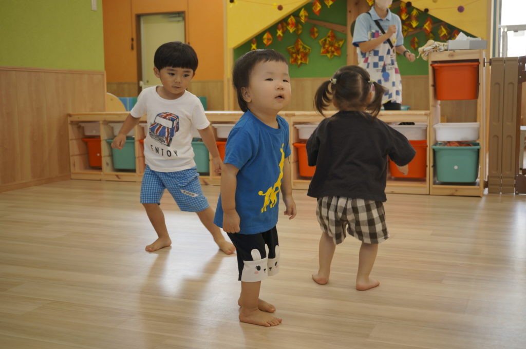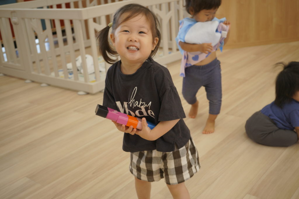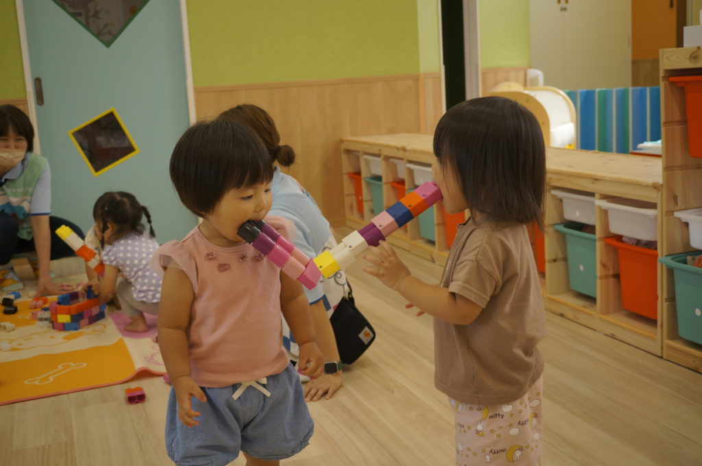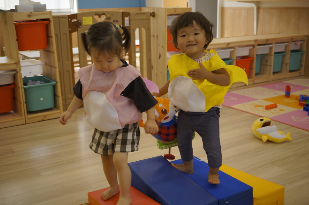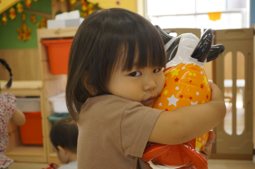 少しずつおともだちとの関りを意識するようになってきました。おともだちと一緒に遊ぶと楽しいなあという感覚を育んでもらいたいと思っています。
