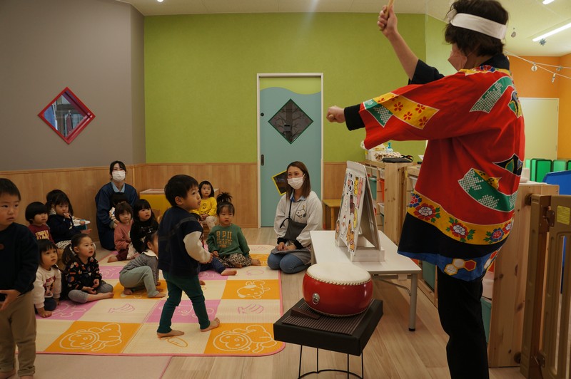 干支のお話を聞いたり、太鼓の力強い演奏を聴いたり…