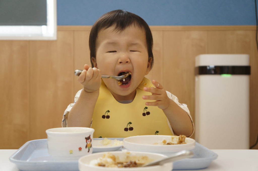 お盆休みが明けて、保育園に子どもたちが戻ってきました。手足口病に罹った子も多く久しぶりの保育園ですのでゆったりとした雰囲気で保育をしました。今日の給食はみんな大好きハヤシライス。完食です!