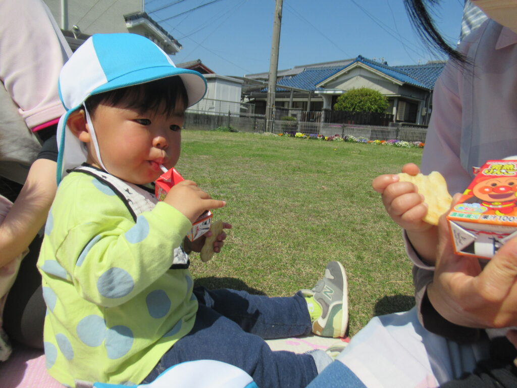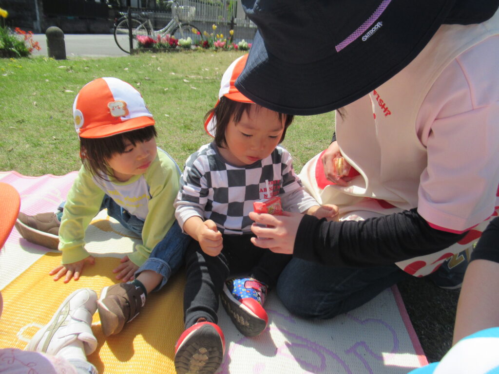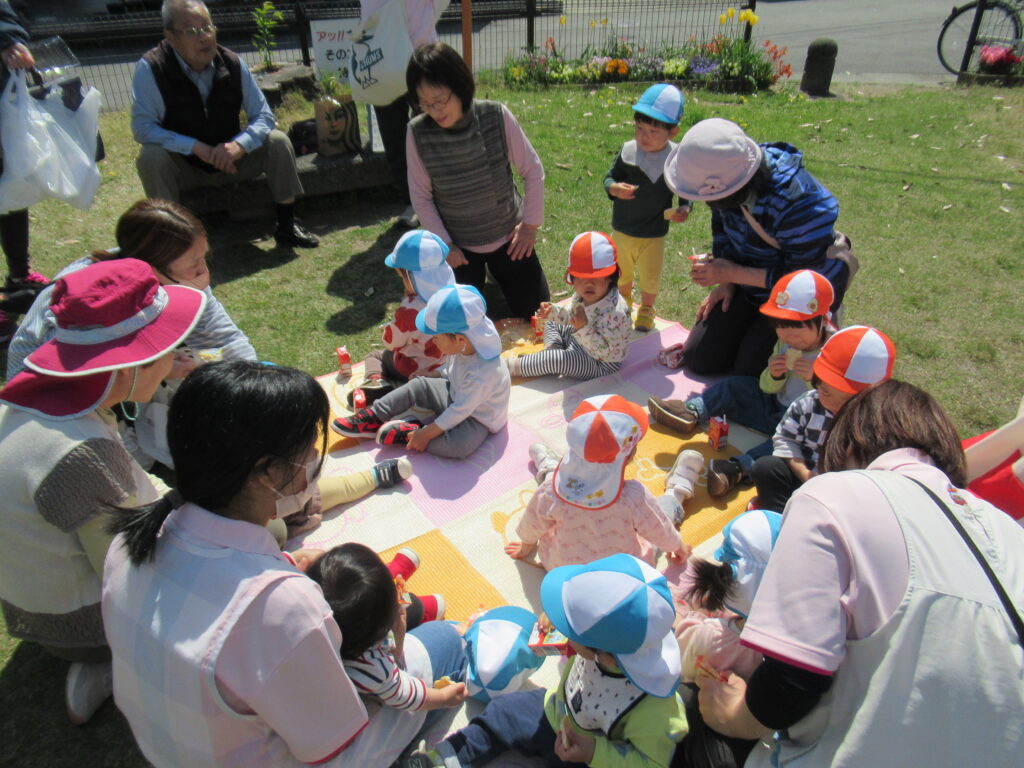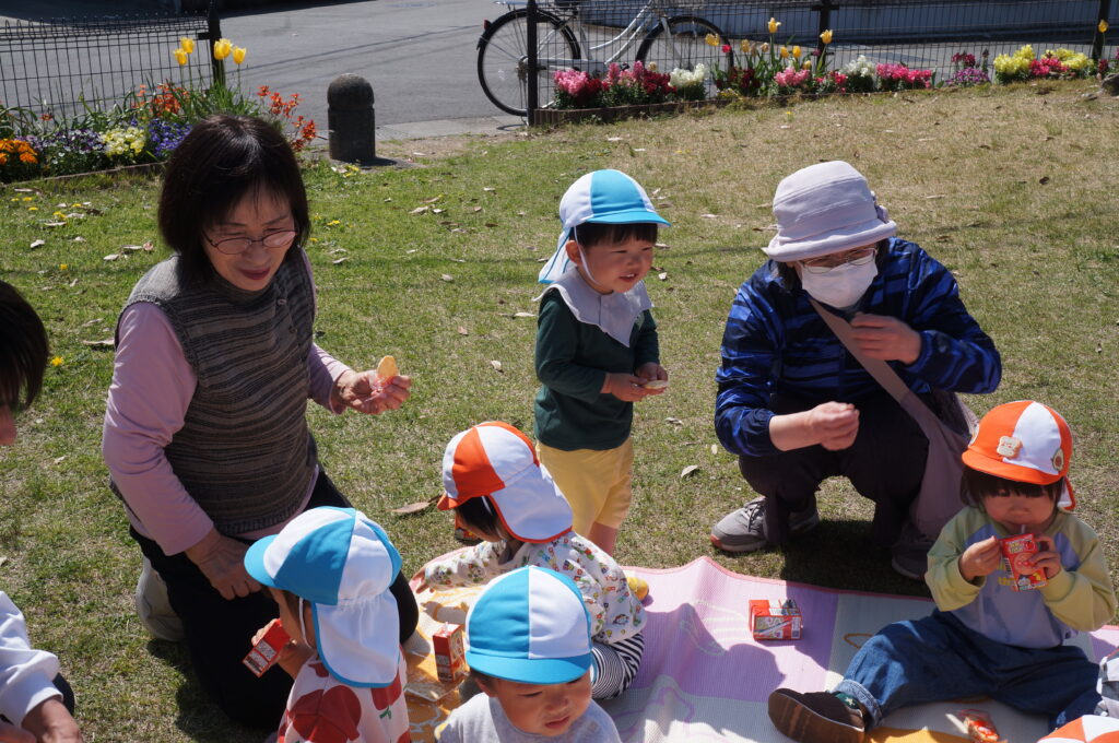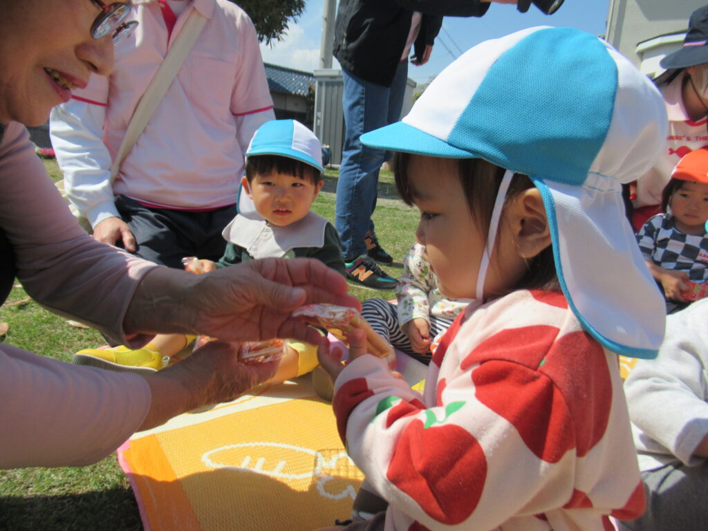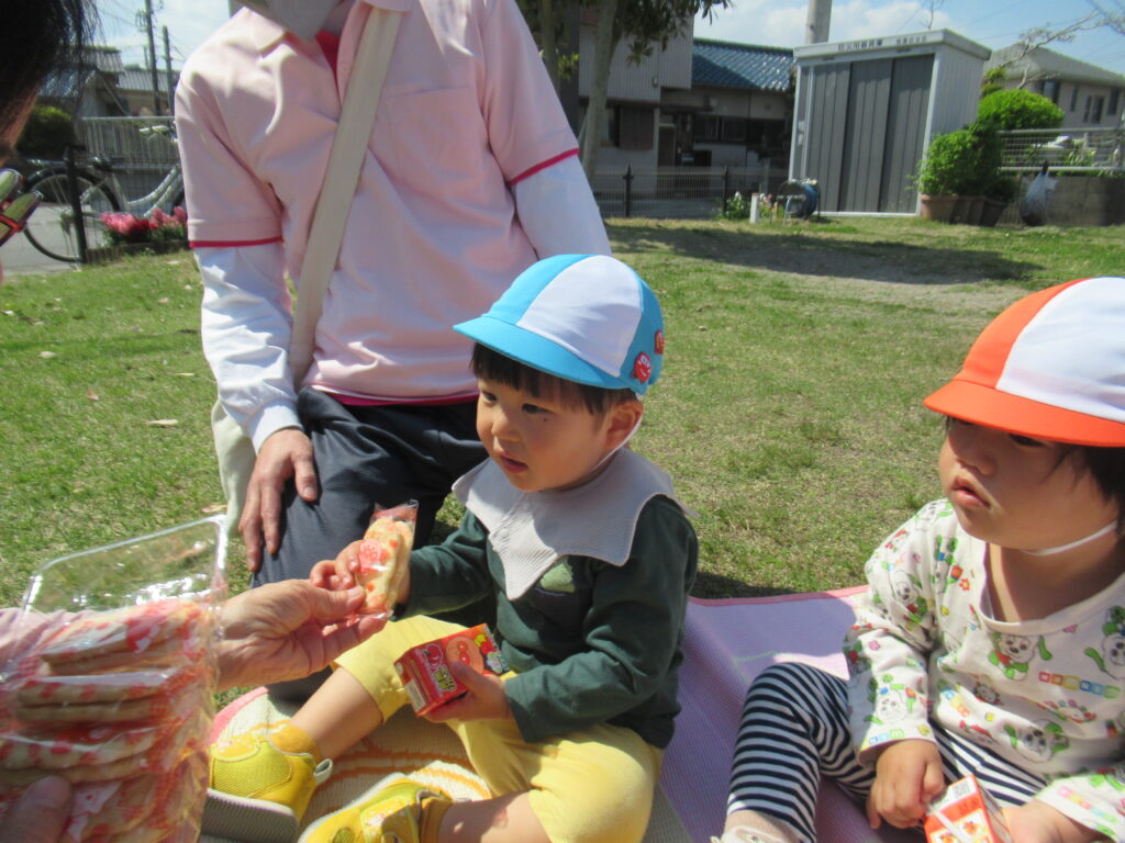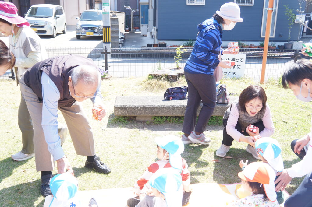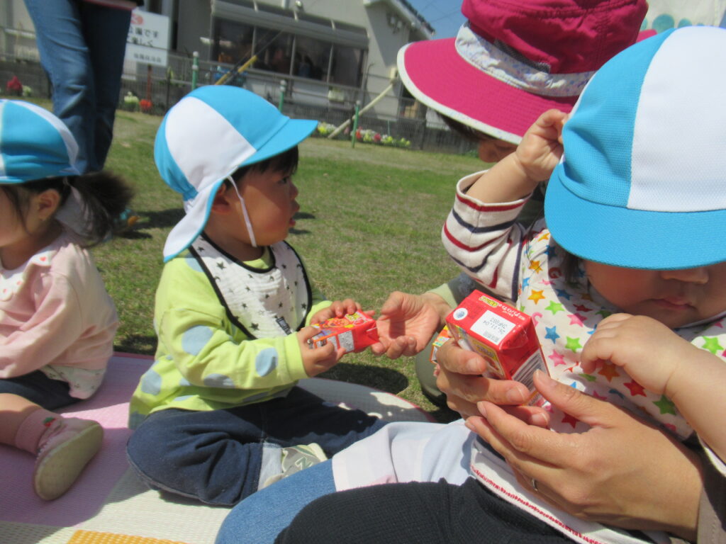 おかしとジュースをいただいて、子どもたちもにっこり笑顔♡