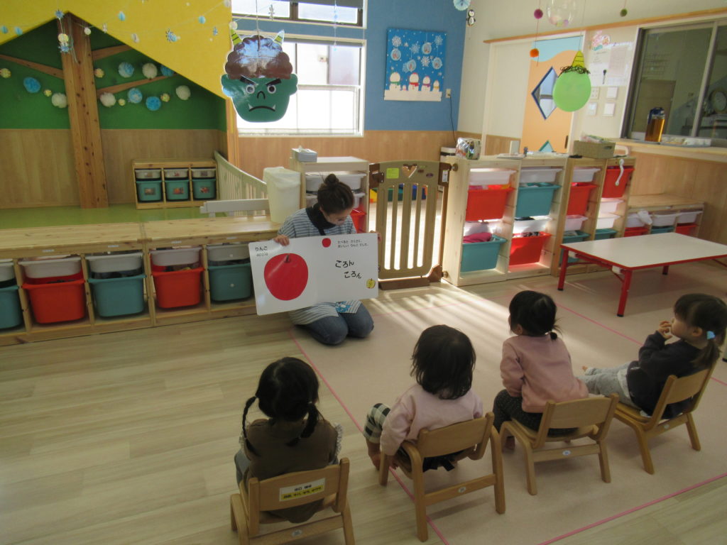 今日のえほんは、「くだもの いろいろ かくれんぼ」
