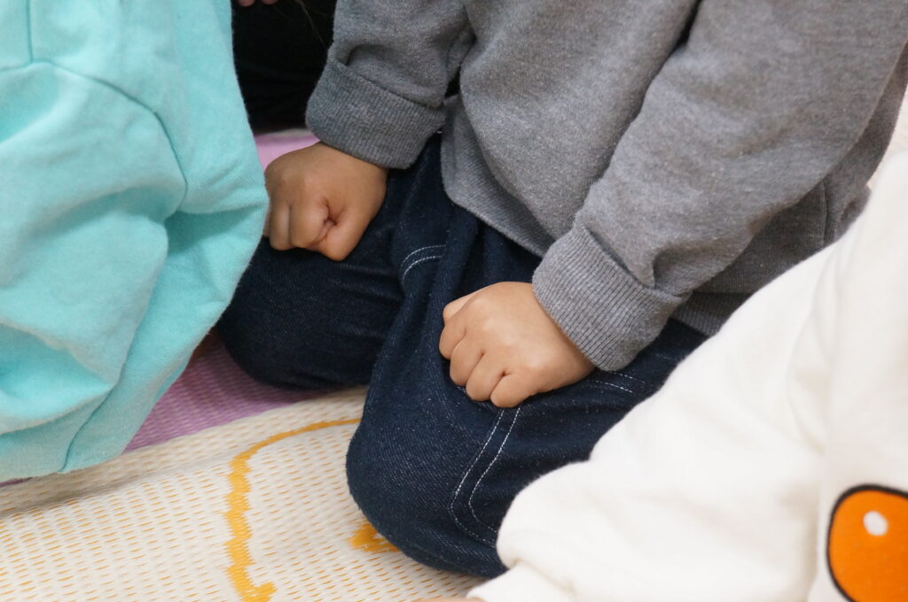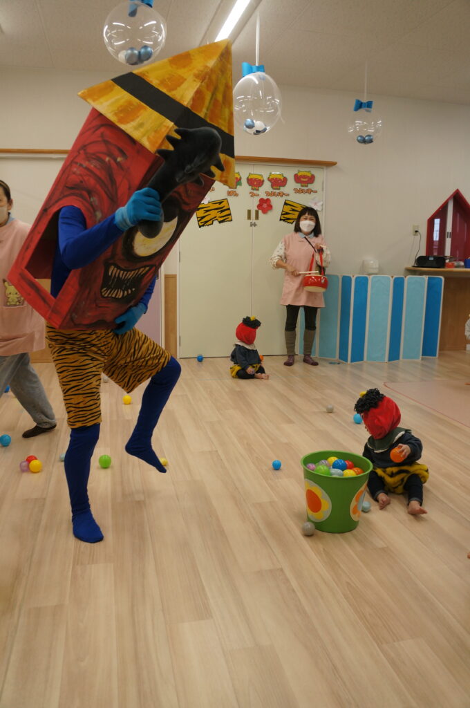 「オニくるかな?」と、ドキドキして小さな手にもちからが入ります…