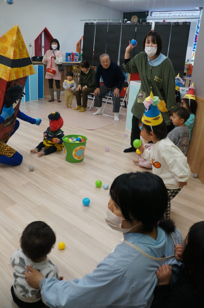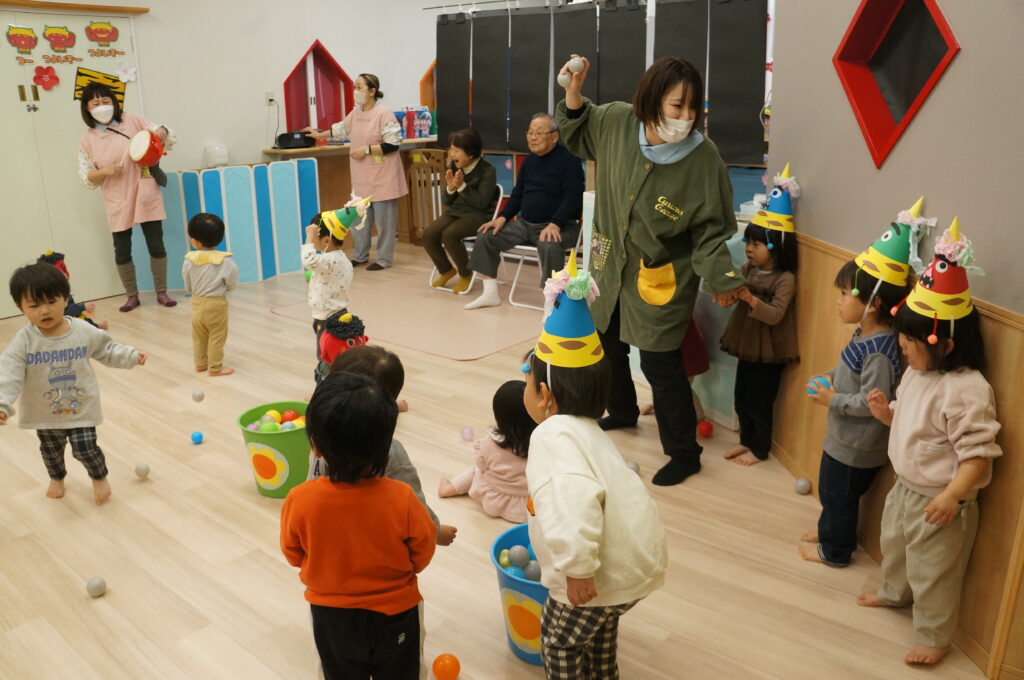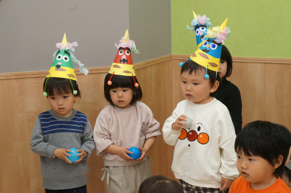「おには、そと!」の声が園内に響きわたりました。