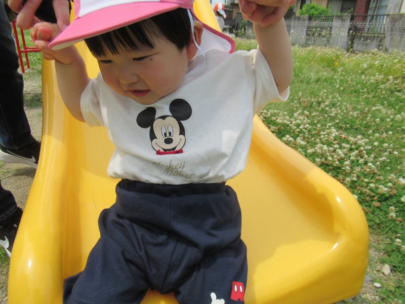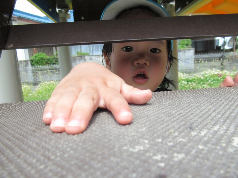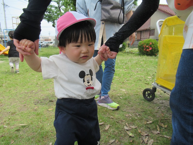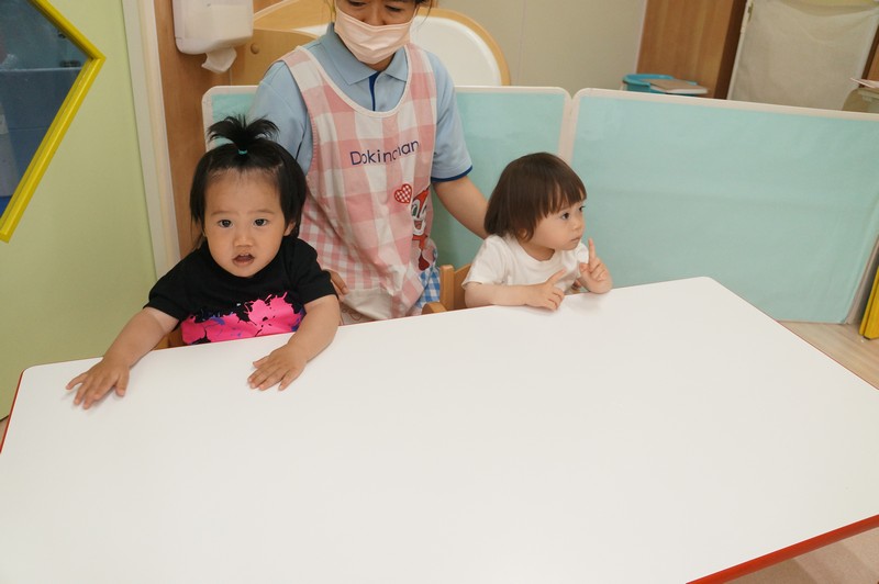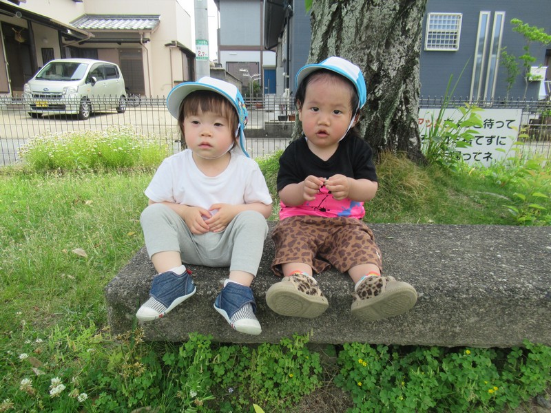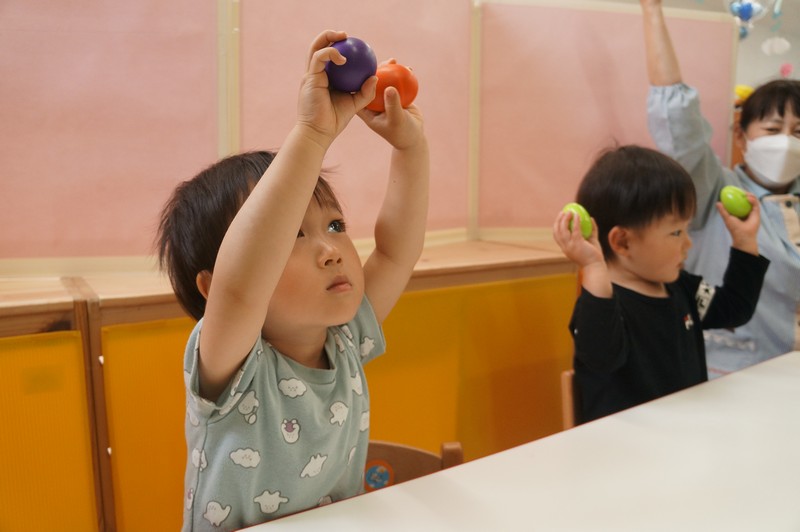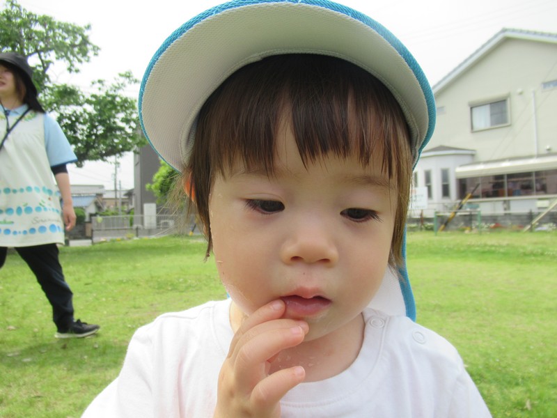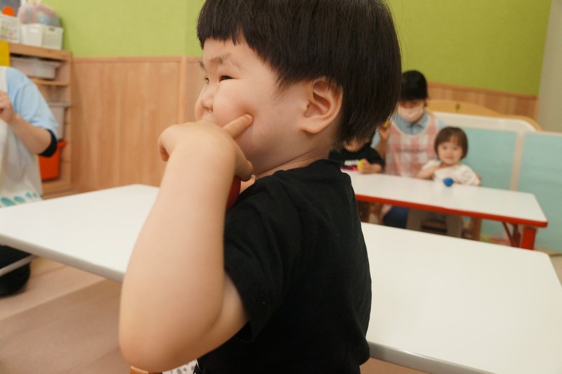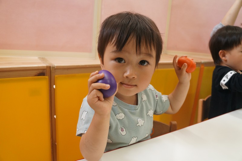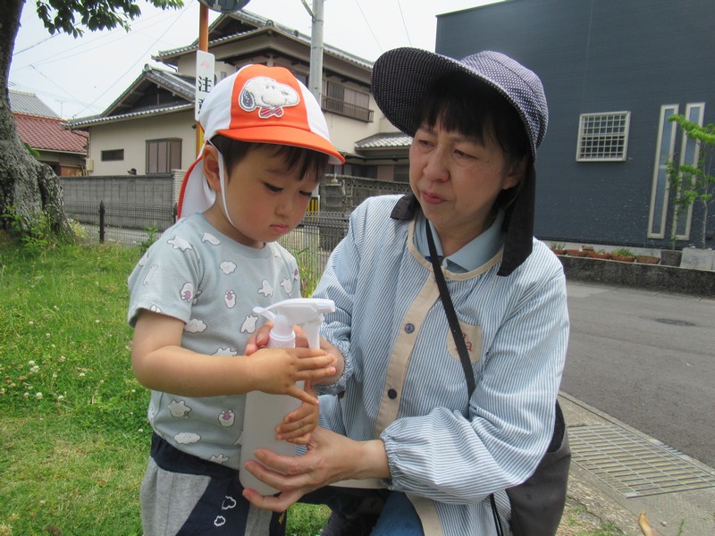 しゃぼん玉を追いかけたあとは、霧吹きで遊びました。
