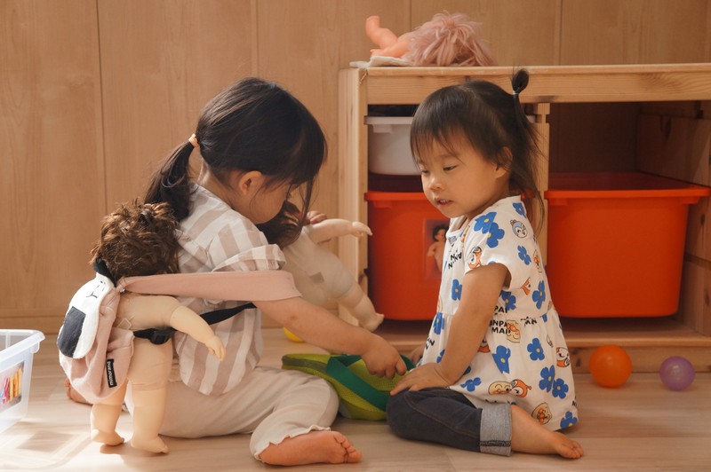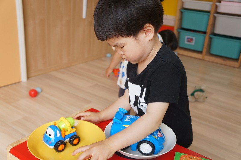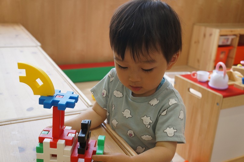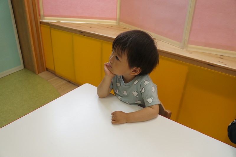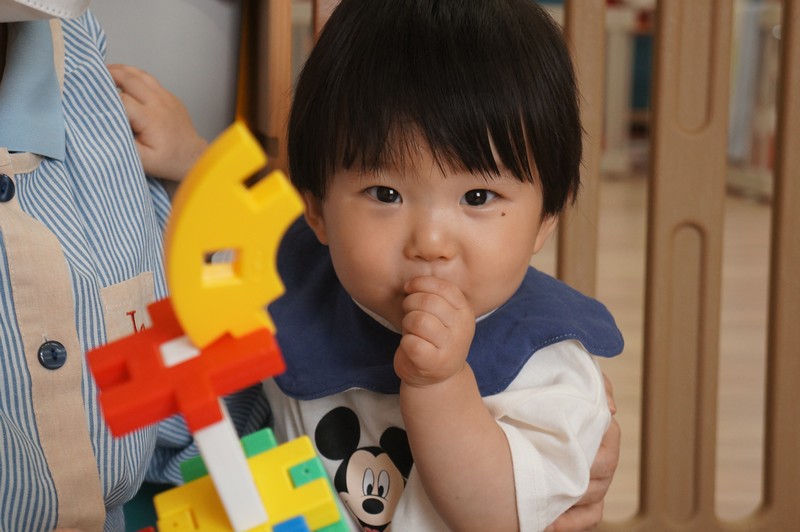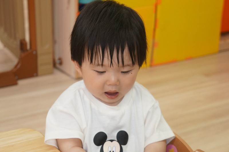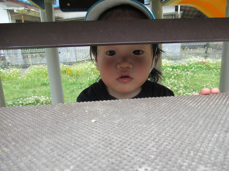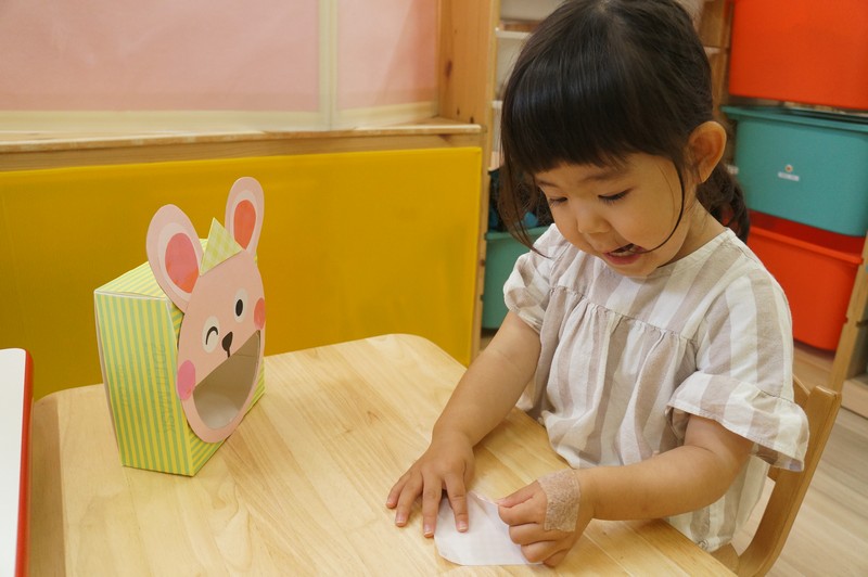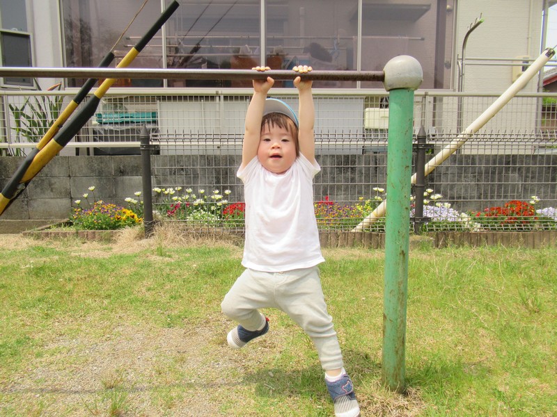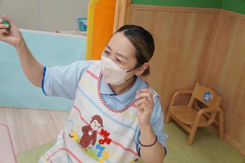 しゃぼん玉を追いかけたあとは、霧吹きで遊びました。