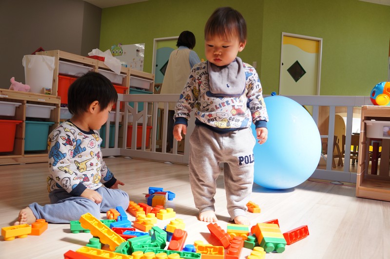 お部屋では、ブロックあそび。