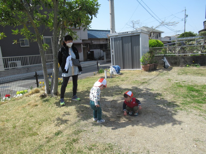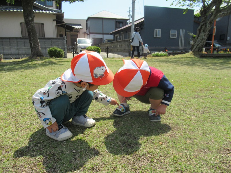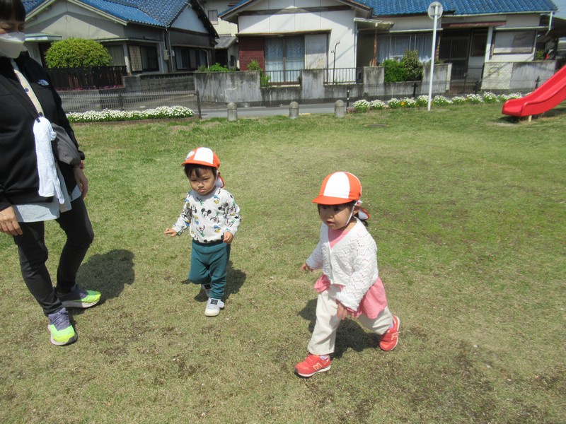 2歳児クラスは、さつき公園までおさんぽ。