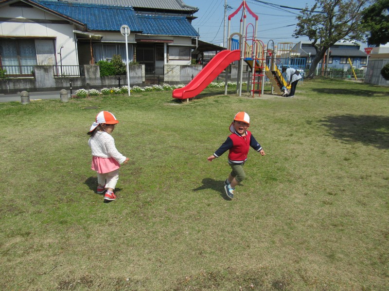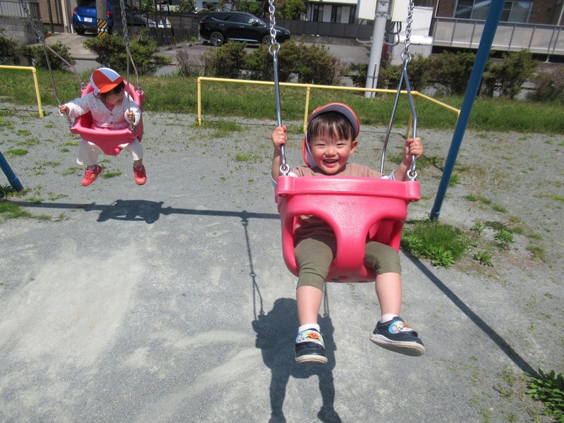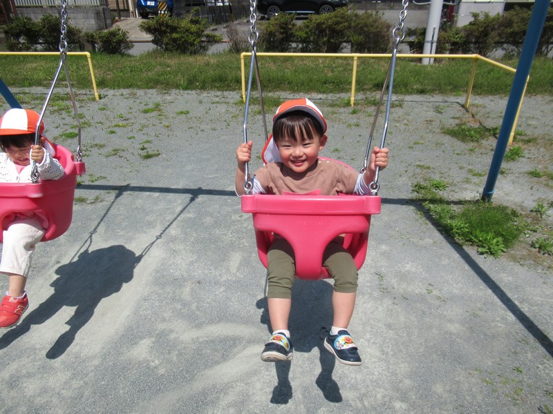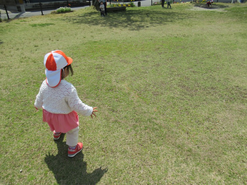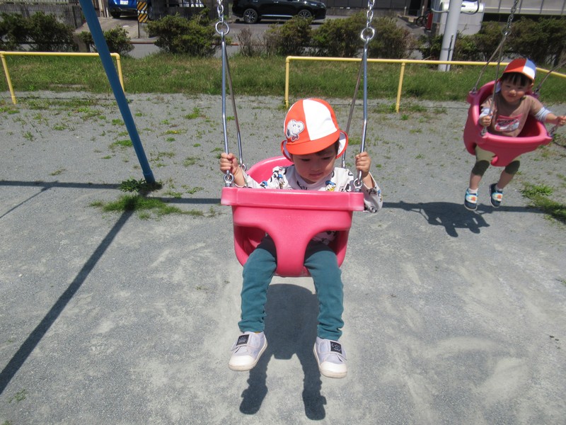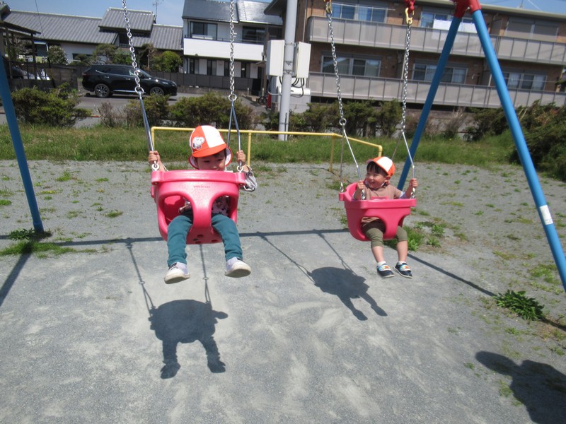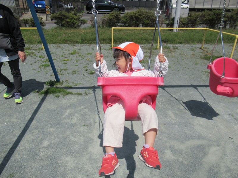 順番に座って、いつもより少し広い公園内で元気いっぱいあそんできました。