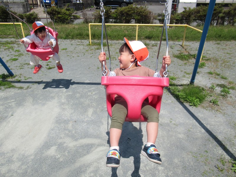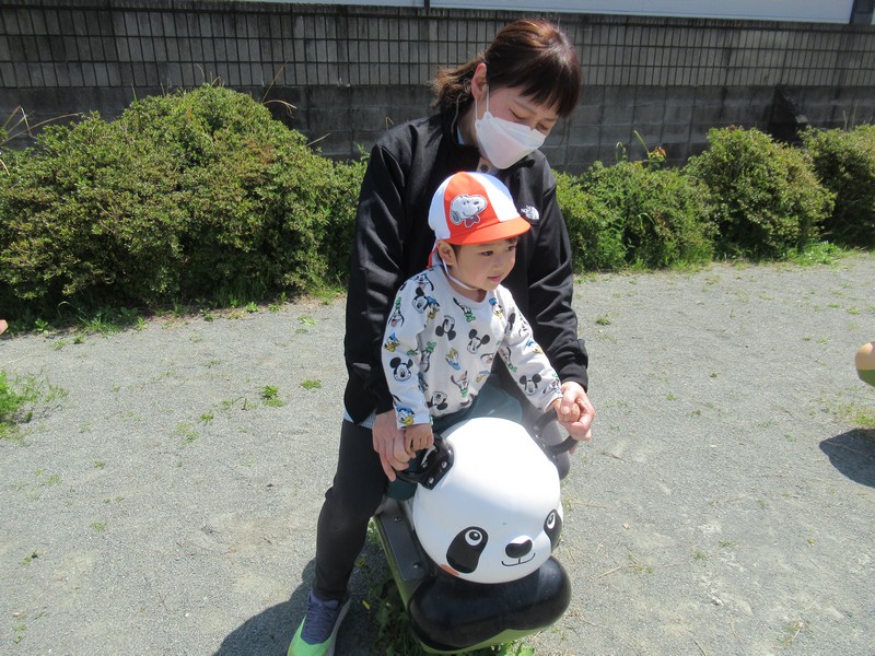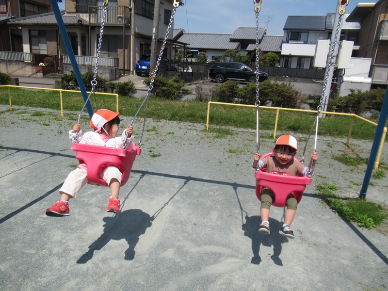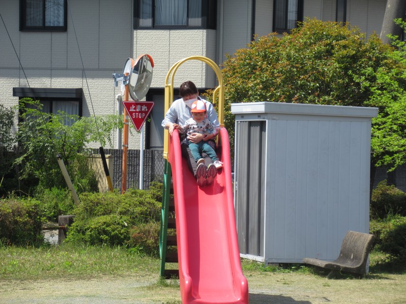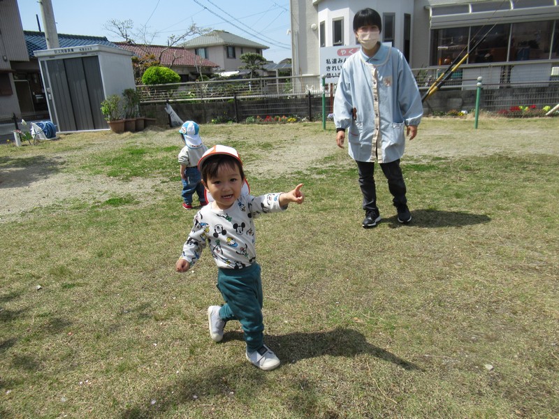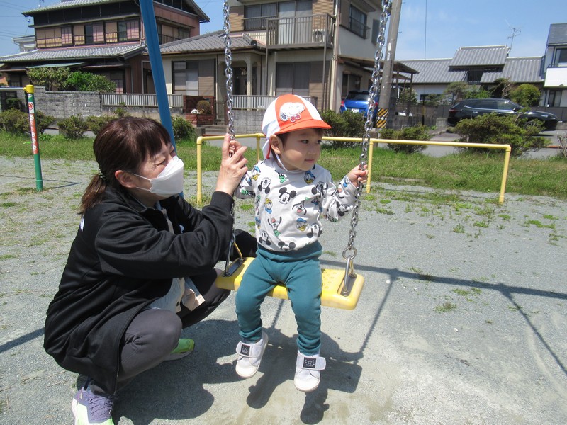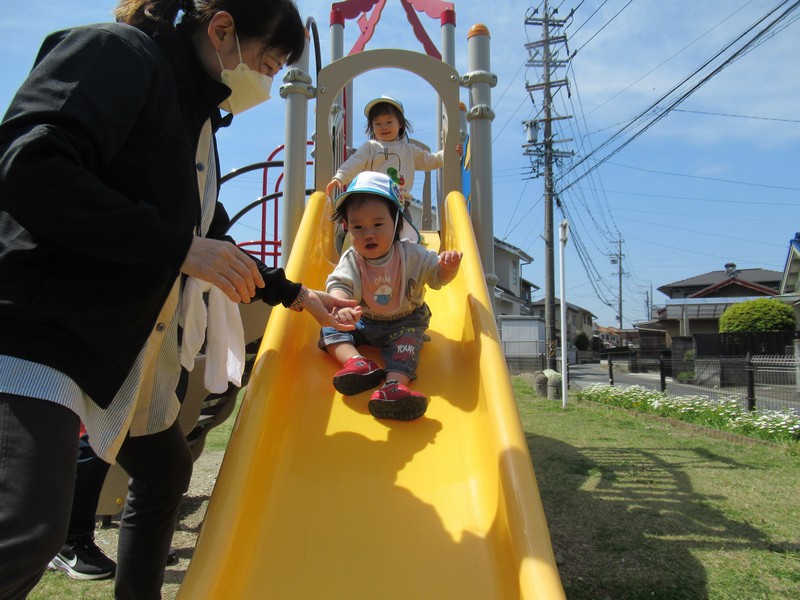 順番に座って、いつもより少し広い公園内で元気いっぱいあそんできました。