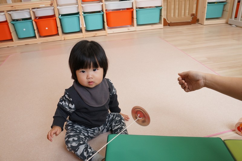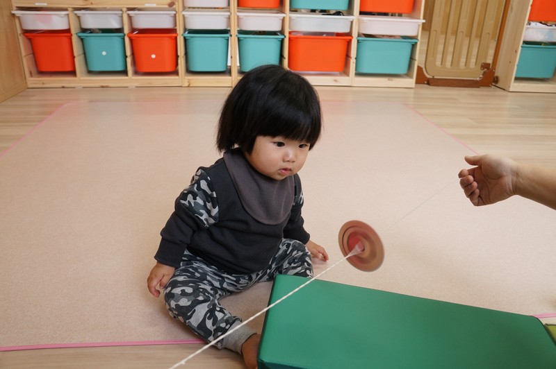くるくる回るこまに、不思議そうな子どもたち…