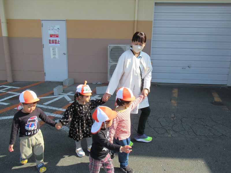 みんなしっかりと手をつないで、じょうずに歩いてる!!