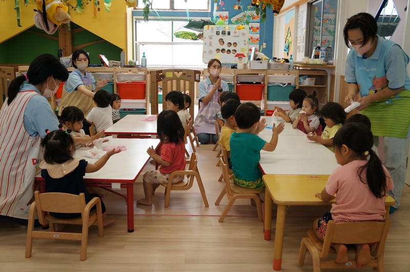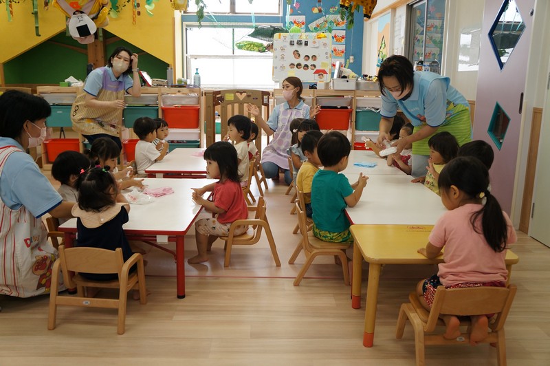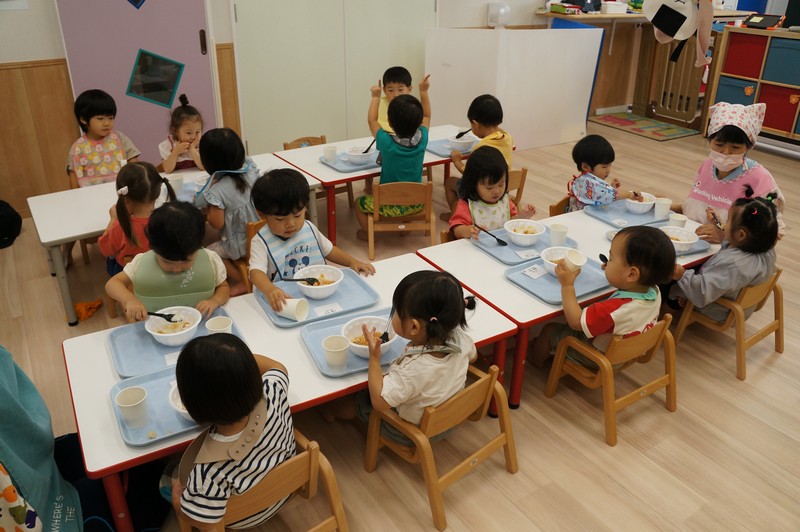 非常食での対応となり、いつもと違うお皿、コップ、スプーンでも上手に食べていました。