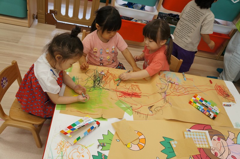 大きな紙に…ぐーるぐる!