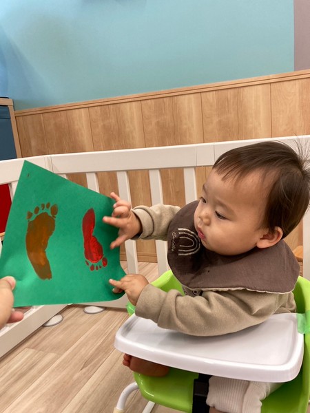 色をぬったり、シールをはったり、足型をとったり…