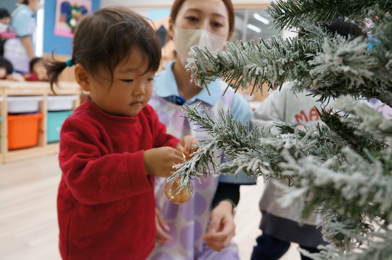 「今日は、クリスマスツリーに飾り付けをします」