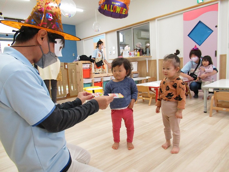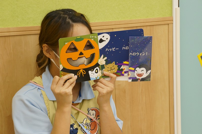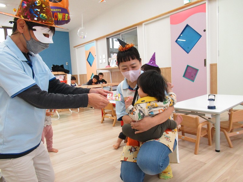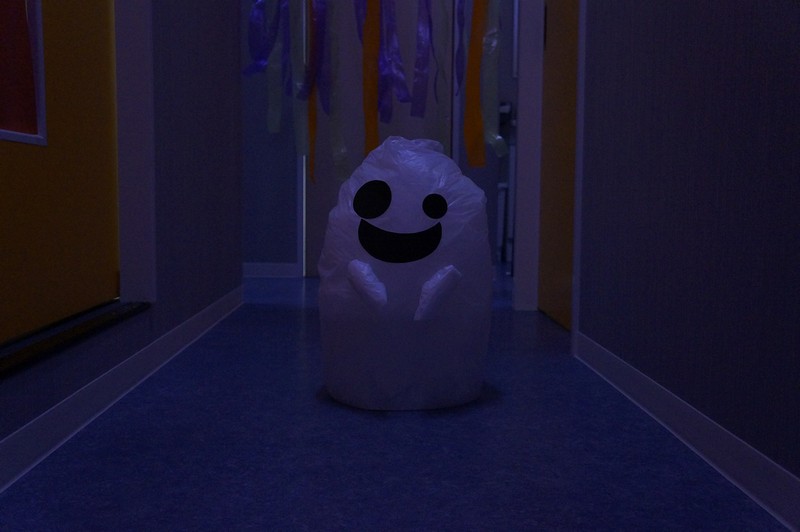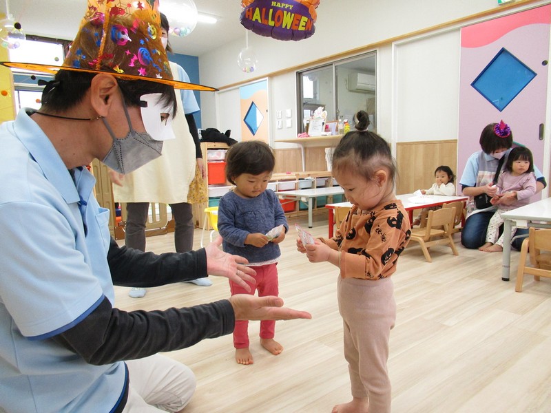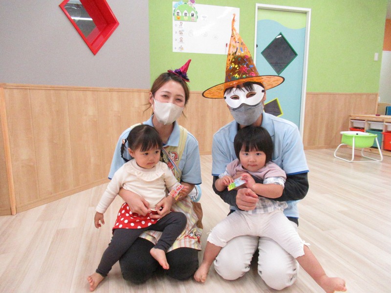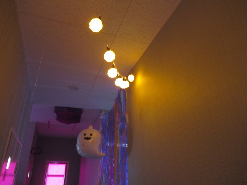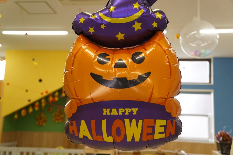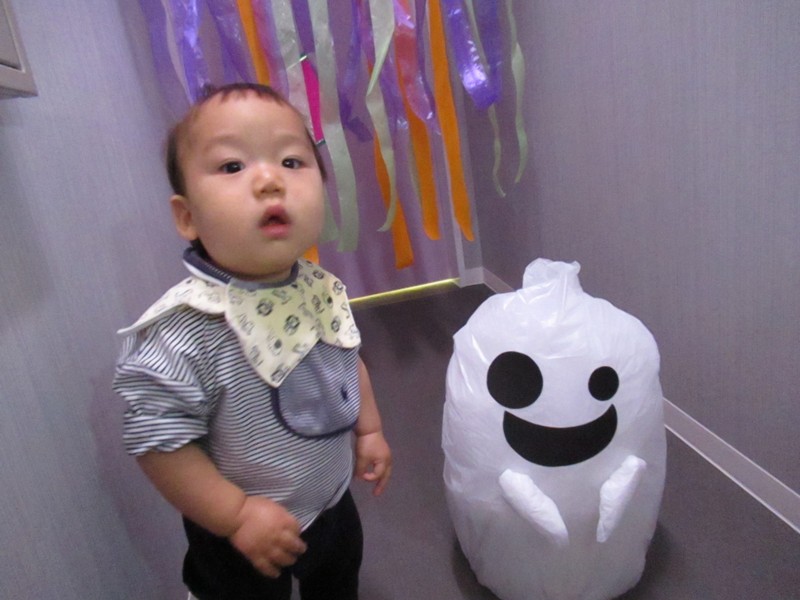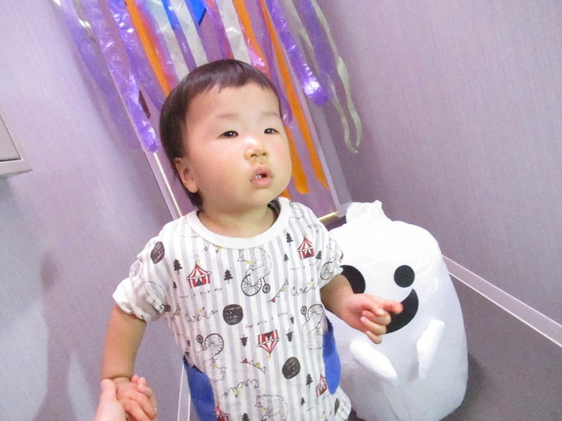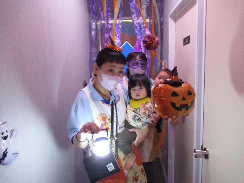 10月31日はハロウィンの日。みんなで楽しく遊ぼうと、廊下をかぼちゃやおばけで飾って探検をしました。
