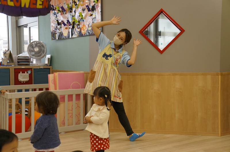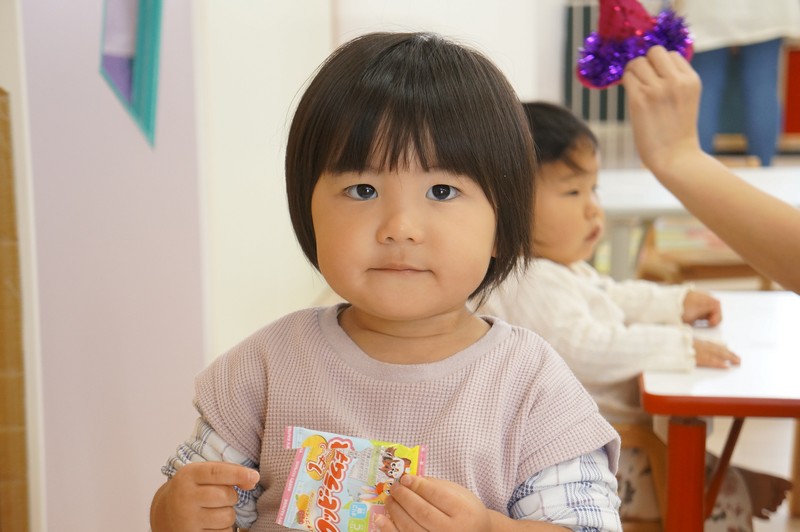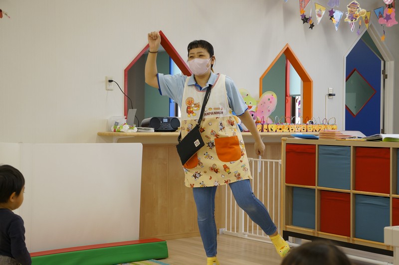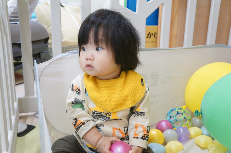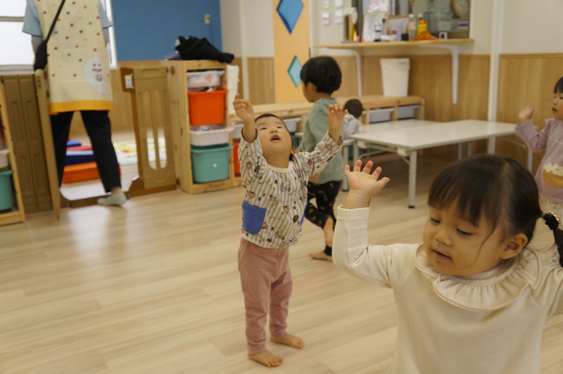 恥ずかしがり屋さんでダンスのときは隅っこに寄ってしまいますが、絵本を読んでもらうときは一番前にいる、自分をしっかり持った子です。