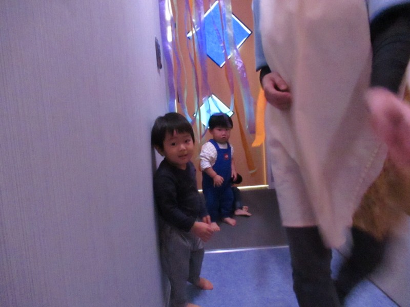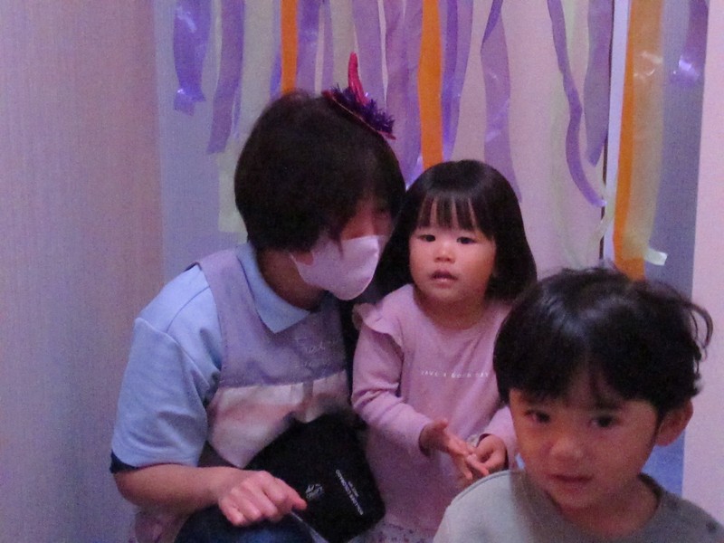 ちょっと怖ーい雰囲気なので、恐る恐る進む子、先生に抱きつく子、ワクワク楽しむ子、泣いてしまう子(ゴメンネ)いろいろな表情がありました。