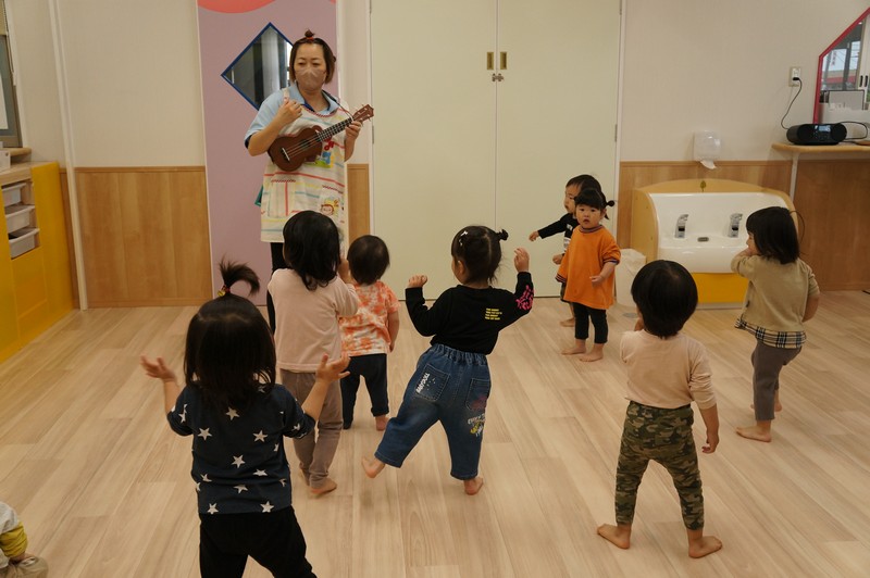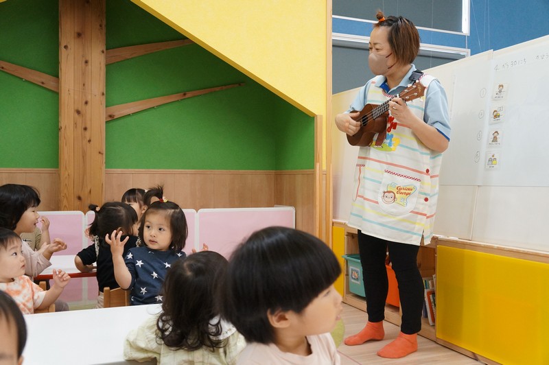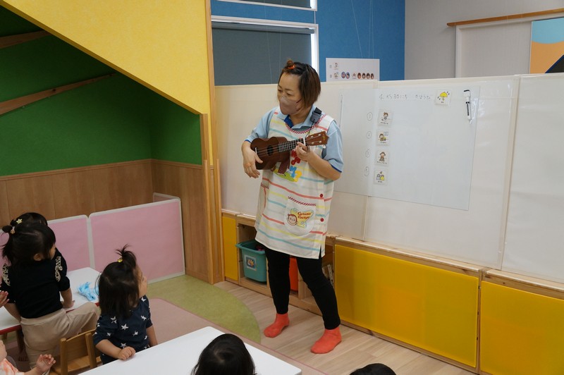 ハマせんせいのウクレレの音色に乗って、おやつのうたをみんなで歌いました♪