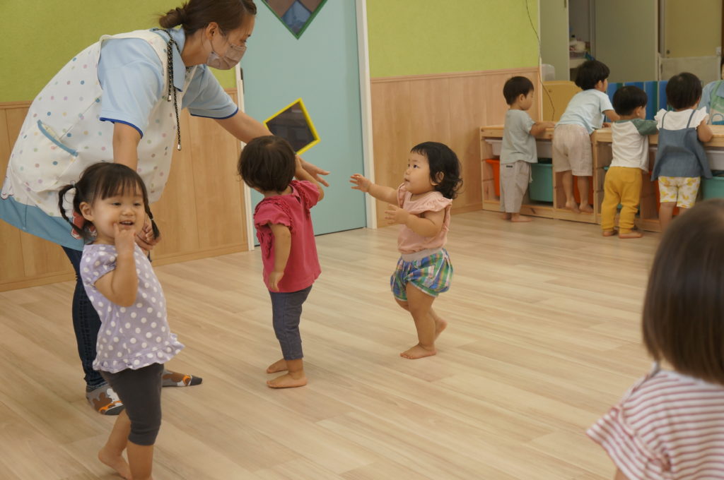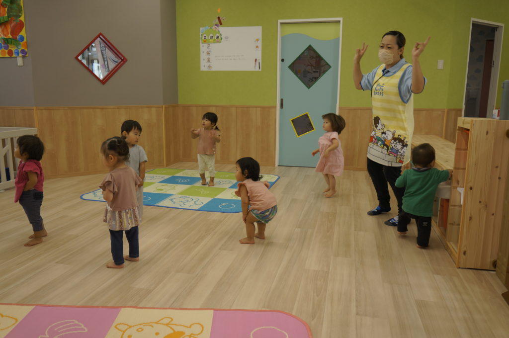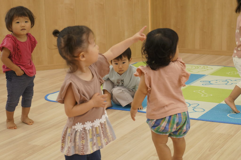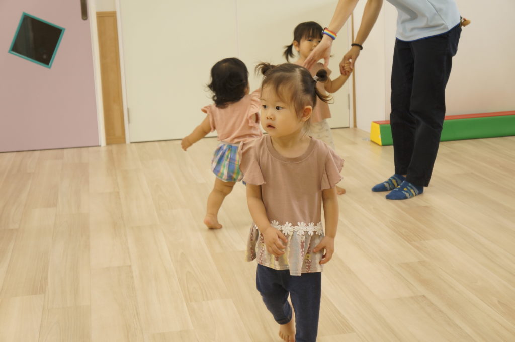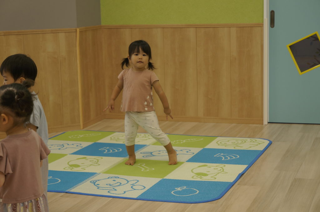 今日は室内でリトミックあそびをしました。せんせいの弾くピアノを伴奏に、走ったり、ゆっくり歩いたり、ごろんと寝そべったり、おばけになったりカエルになったり、音楽に合わせて自由に体を動かしました。子どもたちの元気な声が聞こえる楽しい一日でした。