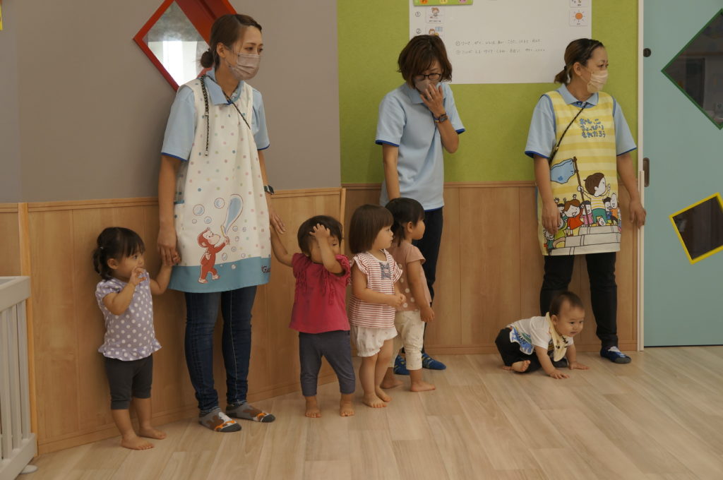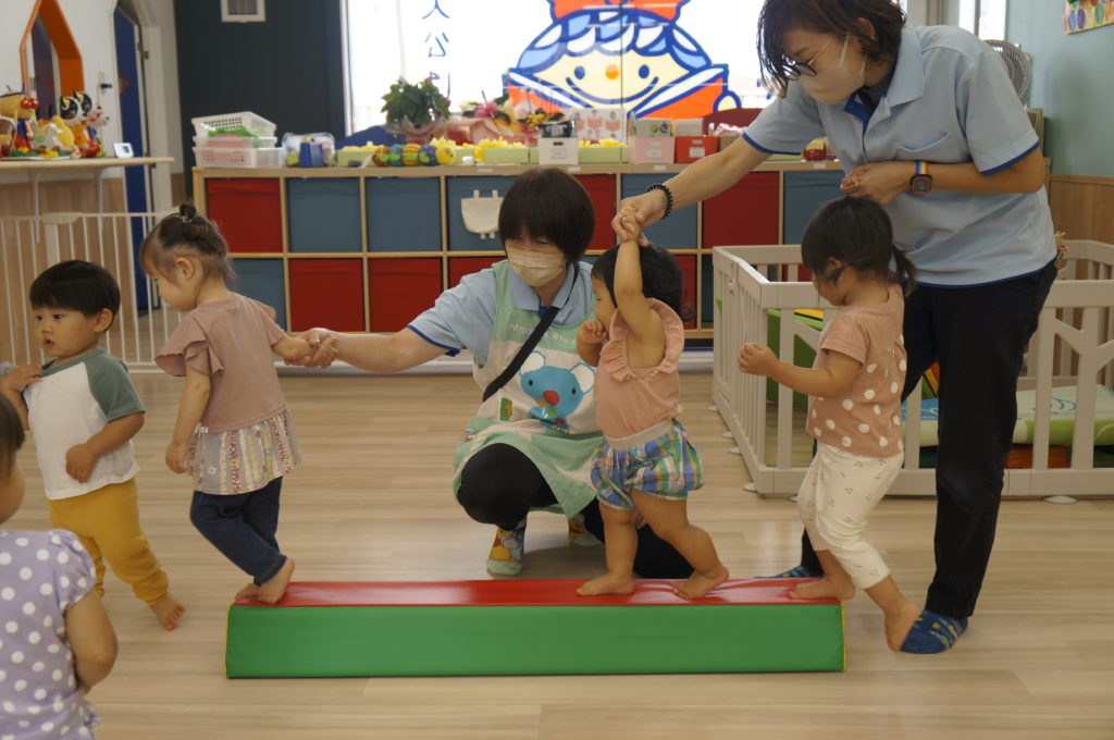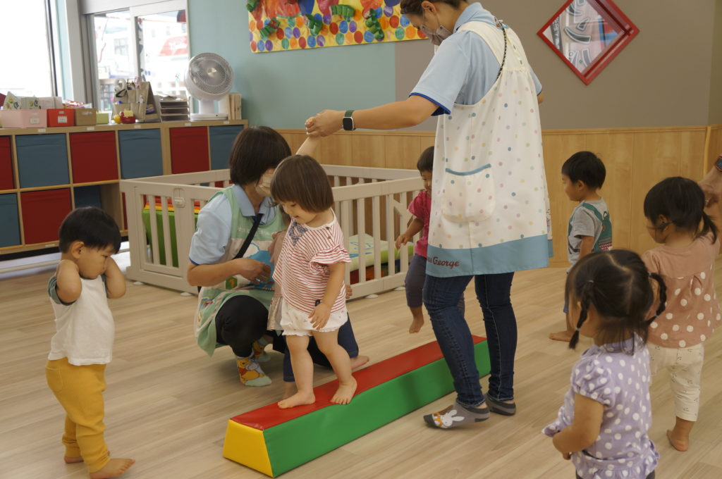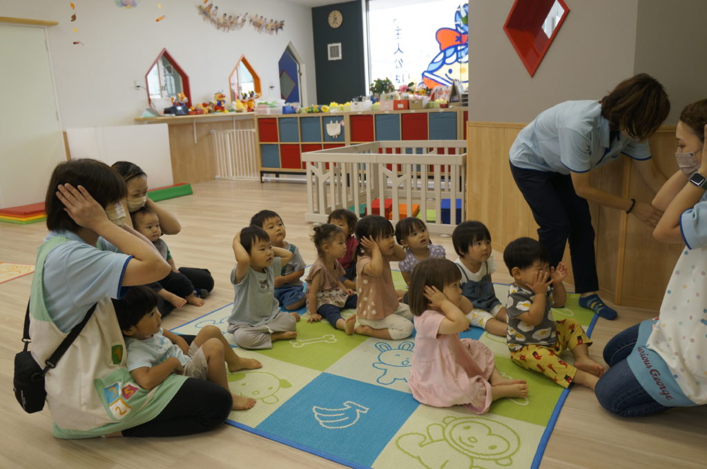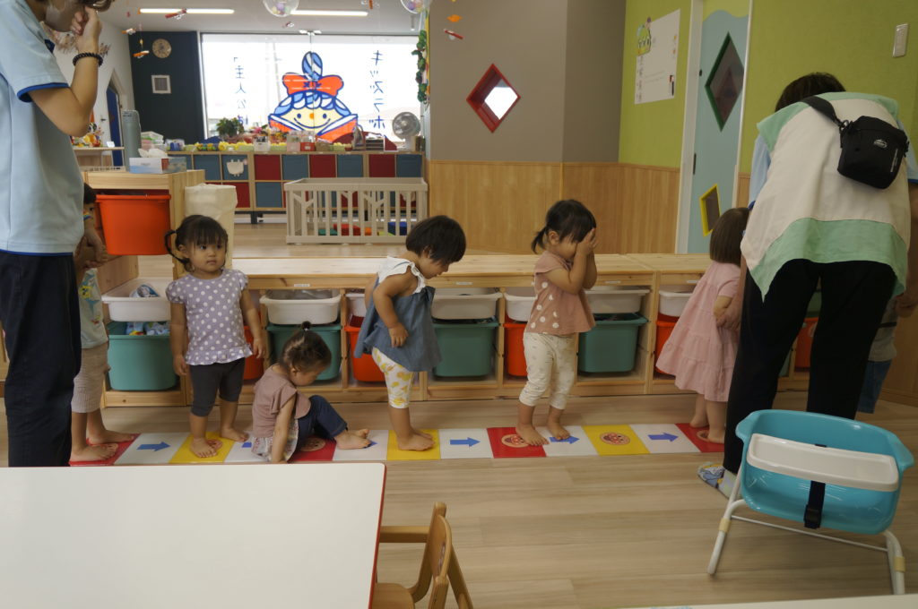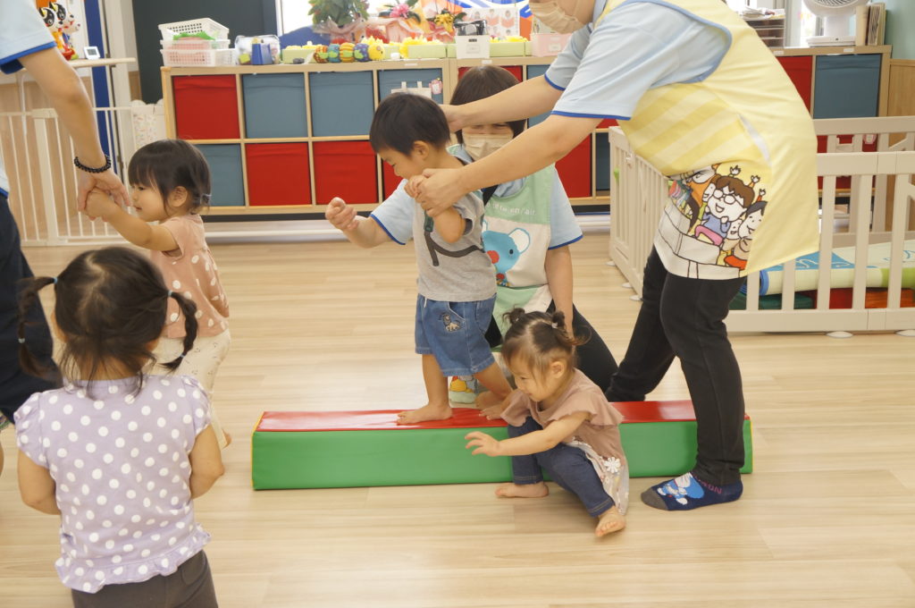 今日は室内でリトミックあそびをしました。せんせいの弾くピアノを伴奏に、走ったり、ゆっくり歩いたり、ごろんと寝そべったり、おばけになったりカエルになったり、音楽に合わせて自由に体を動かしました。子どもたちの元気な声が聞こえる楽しい一日でした。