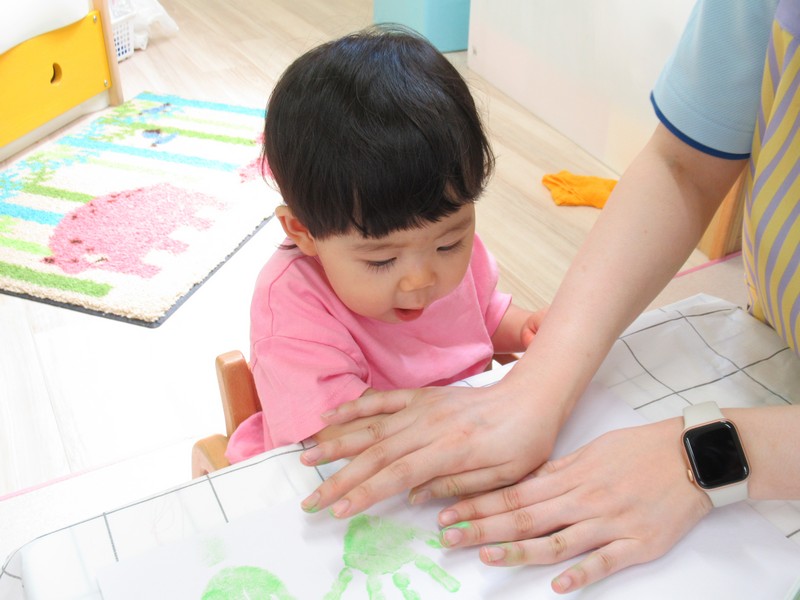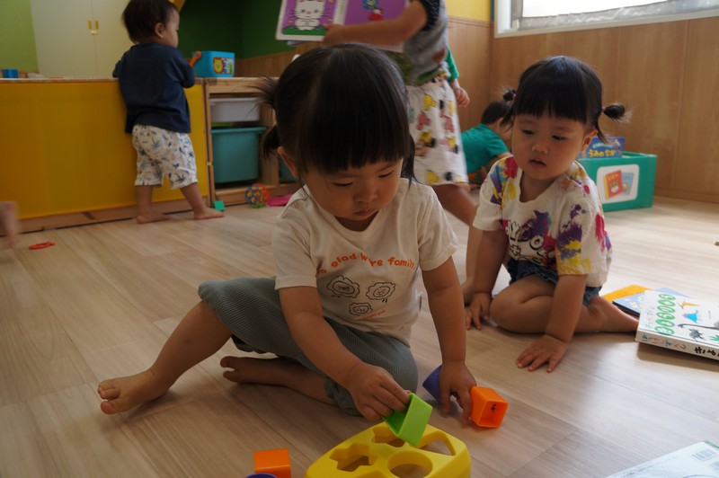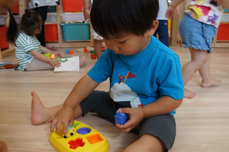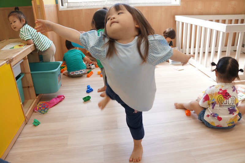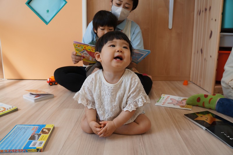 0、1歳児クラスは、室内で。
